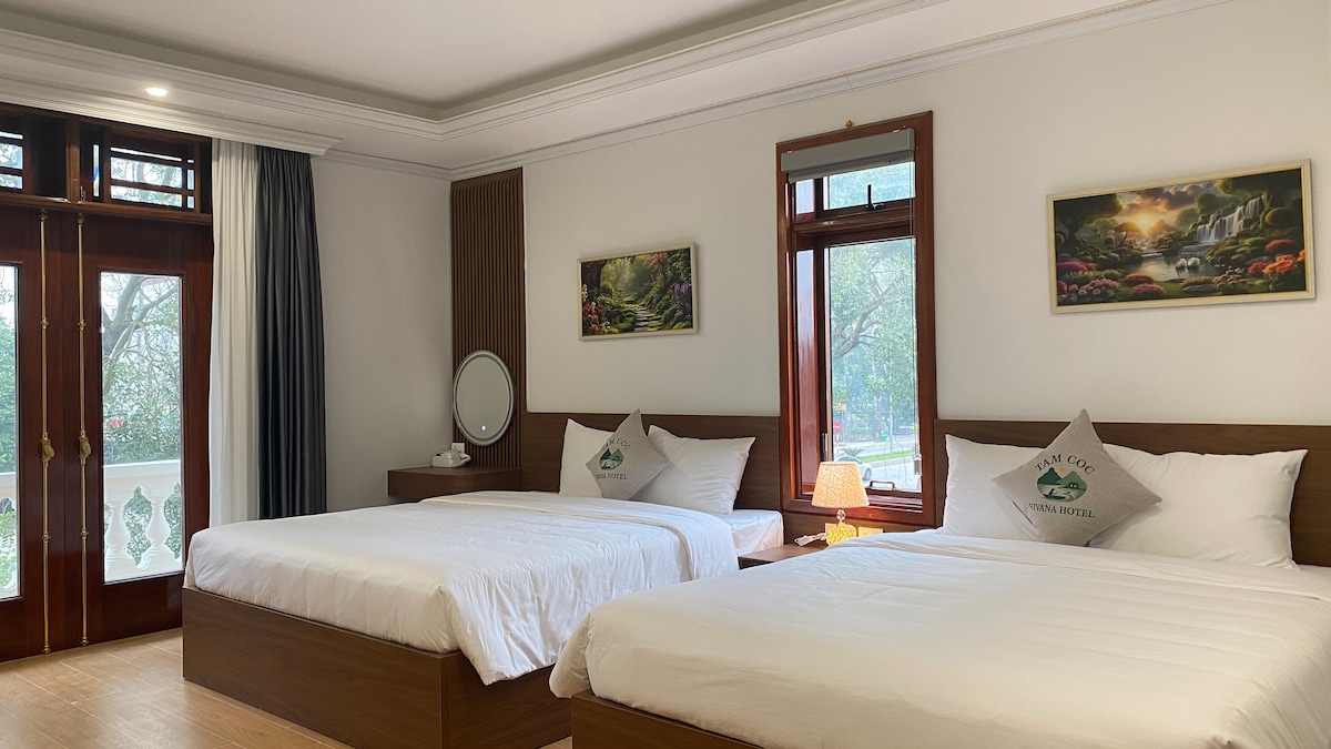 - Zentrale Lage der Stadt Ninh Binh - Zu Fuß zur Altstadt von Hoa Lu - In der Nähe von Vergnügungsparks, köstlichen Restaurants, Spa - Kostenlose Autogarage vorhanden - Hat ein luftiges Fenster - 2 1 m6 Betten, Kingkoil Everon Federkernmatratze, weiche Kissenlaken - Aufpreis von 50.000/Person bei einem Aufenthalt von mehr als 2 Personen - Motels Küche kann verwendet werden, um Babypuder zu stören. - Verbindung von Motorradverleih, Autovermietung rund um die Punkte in Ninh Binh City.