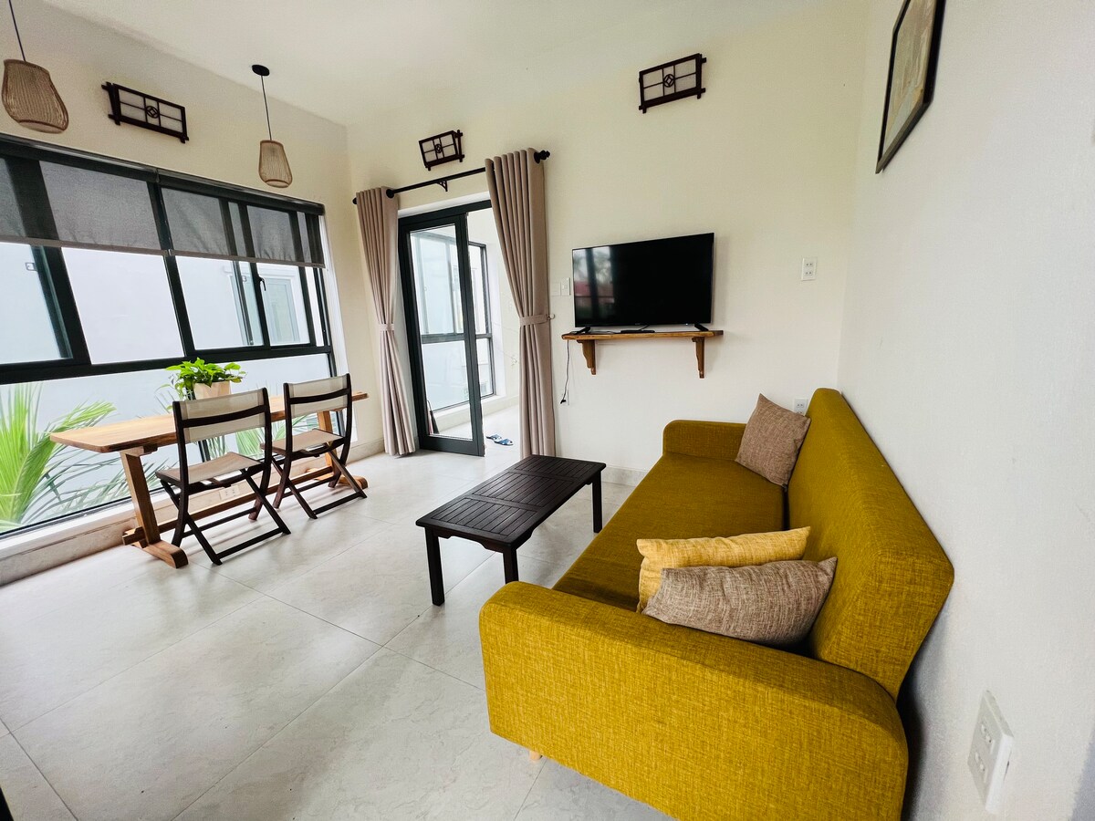 🎁 Eine neu erbaute Villa, nur 3 Gehminuten vom Strand Cua Dai und dem Fluss Thu Bon entfernt, bietet eine seltene Mischung aus Privatsphäre, Wellness und Küstencharme. Genieße einen privaten Pool, Yoga am Strand und Zugang zu lokalen Restaurants und Spas. Mit 3 ruhigen Schlafzimmern (2 Kingsize-Betten + 2 Einzelbetten) bietet es bequem Platz für 6 Erwachsene + 2 Kinder (unter 6 Jahren) — perfekt für Familien, die Platz, Entspannung und sinnvolle Verbindung in einer raffinierten, ruhigen Umgebung suchen.
