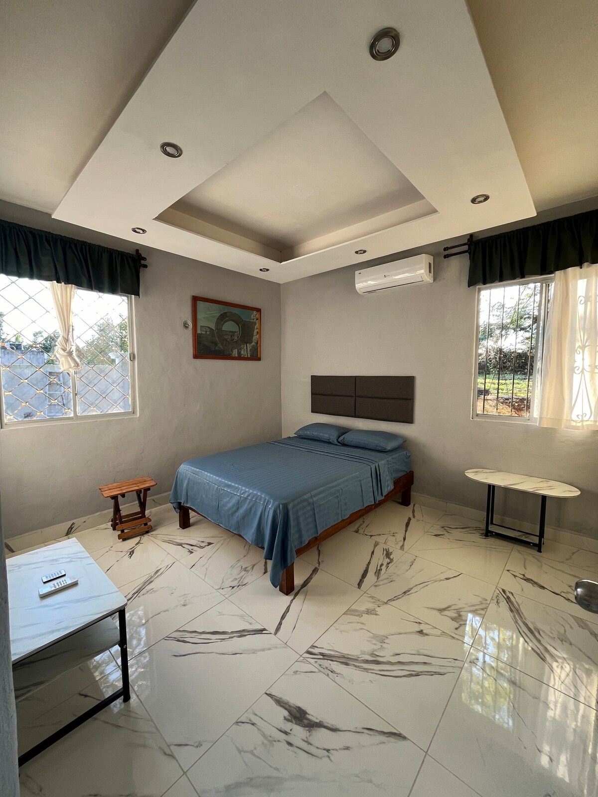 Dieses ordentliche Haus, nur zwei Blocks vom Kloster, Mercado und Centro entfernt, ist perfekt für große Familien/Gruppen, da es 3 Betten und zwei Hängematten im riesigen Schlafzimmer und drei Hängematten im Esszimmer gibt, und jetzt eine 2. Toilette und Dusche hinten. Es gibt eine Klimaanlage im Wohnzimmer und im Schlafzimmer. Es gibt gutes Internet und einen 42-Zoll-Flachbildschirm zum Streamen von Videos. Das Frühstück beinhaltet Eier, Brot, Milch, Käse, Müsli, Marmelade, Butter, Kaffee und Tee. Riesiger sicherer Hinterhof für deine Haustiere zum Wandern.