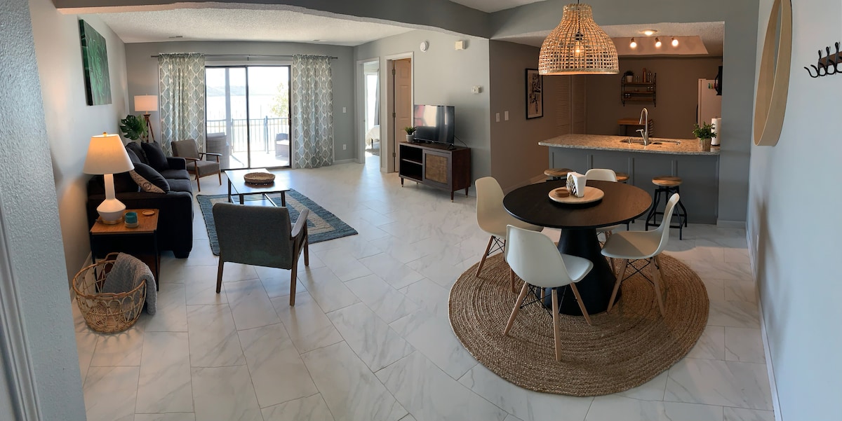 Lehne dich zurück und entspanne dich im Lakeside Boho Bungalow. Diese stilvolle und gemütliche Wohnung mit zwei Schlafzimmern und 2 Bädern erfüllt sicher alle deine Bedürfnisse und bietet eine schicke Boutique-Gastfreundschaft Es liegt direkt am Wasser des Table Rock Lake in Kimberling City und blickt auf die Brücke und den Pool. Wir haben WLAN, Smart-TVs in allen Zimmern und auf der Terrasse, eine Whirlpool-Badewanne und gemütliche, hotelähnliche Betten. Genieße alles, was die Ozarks zu bieten haben, mit der nahegelegenen Silver Dollar City, Dogwood Canyon, Weltklasse-Golfplätzen und ThunderRidge!
