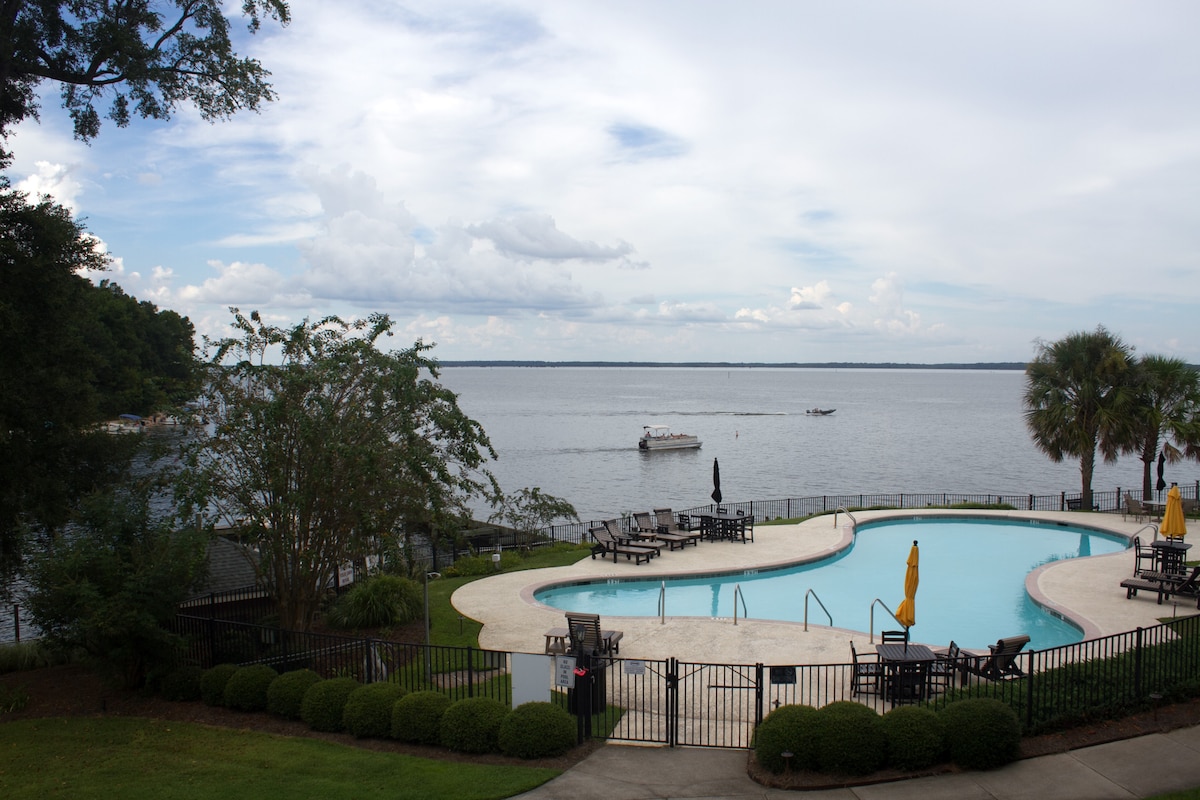 Schöne Wohnung direkt am See Marion in Santee, SC. Diese Einheit im zweiten Stock verfügt über einen Aufzug oder Treppenaufgang. Der Balkon bietet einen Blick auf den See und den Pool direkt draußen. Dieser See ist beliebt für Wassersport und unglaubliches Angeln.