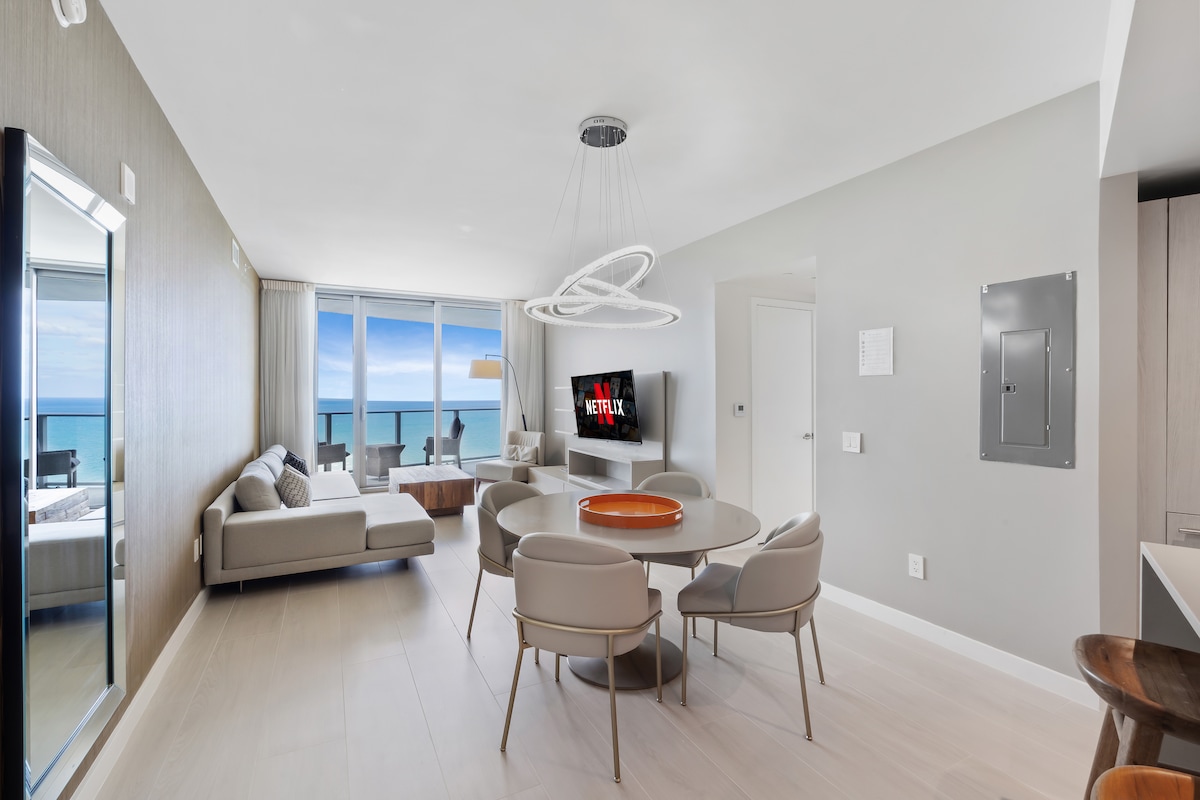 Übernachte in dieser 2-Zimmer-Wohnung mit 2 Badezimmern im Hyde Beach House. Die begehrteste Einheit in der Nordost-Ecke mit herrlichem Blick auf das Meer, das Intracoastal und die Stadt. Diese luxuriöse Eigentumswohnung verfügt über moderne Möbel, hochwertige Geräte und hochwertige Betten. Kabelfernsehen, 100+ Mbit/s WIFI, Alexa und Netflix bereit. Nur wenige Schritte vom Meer und wenige Minuten von Golf- und Country-Clubs, spannenden Rennbahnen und Casinos, unterhaltsamen Parks und Attraktionen, erstklassigen Einkaufsmöglichkeiten, großartigen Restaurants, Unterhaltungsangeboten, Kunst und vielem mehr entfernt.
