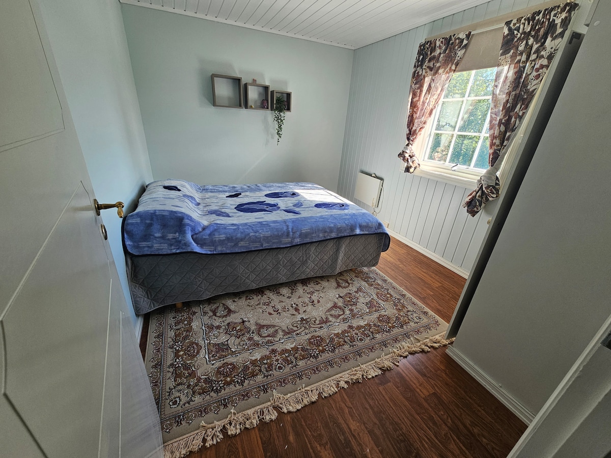 Anneks på 15 m2 ved siden av vertens hytte, som ligger 10 meter fra vannet. Hytta er vestvendt, med flotte solforhold i skjærmede omgivelser. Nyt sol, vann og skog, her er det både tur-, bær- og soppterreng, du kan også fiske uten kort. Du hører lyden av både kyr og høns i det fjerne, og vinden som suser i furutrærne. Rustikk sjarm, enten 200 meter å ro, eller ca 500 meter å gå fra parkering. Her kan du finne roen. Du bor alene i annekset, og uteområdet er gjerdet inn. Dyr er velkommen!
