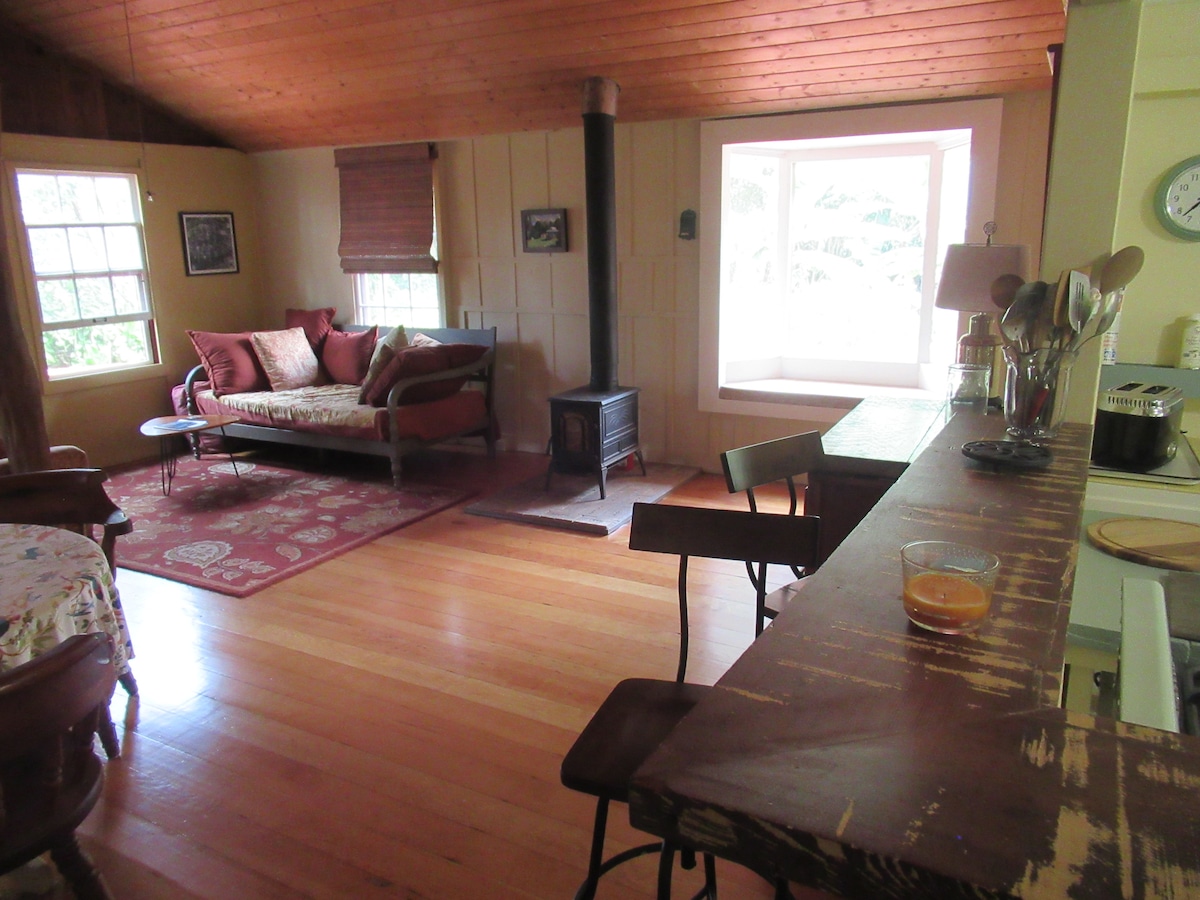 Deine eigene private Blockhütte und Wasserfall! Lausche dem rauschenden Bach, während er über deinen eigenen, 50 Fuß hohen Wasserfall in deiner eigenen, privaten Hütte stürzt. Für den Schriftsteller. Für den Träumer. Für den romantischen Kurzurlaub. Lass dich inspirieren, transportieren und in unsere Regenwald-Oase an der Hamakua-Küste eintauchen. Unser Regenwaldgrundstück liegt neben dem Waipio Lookout und ist der perfekte Ort, um neue Energie zu tanken und sich zu regenerieren. Wir sind eine zehnminütige Fahrt von der historischen Stadt Honoka'a entfernt. Unser „Banana Belt“-Klima ist perfekt!