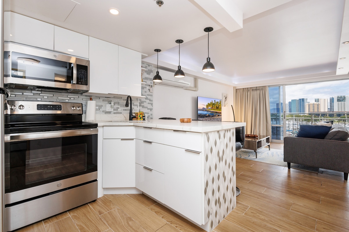 Aloha und willkommen! Neu renovierte, saubere und gemütliche Eigentumswohnung mit 1 Schlafzimmer und 1 Badezimmer im Herzen der Innenstadt von Honolulu. Genieße den Blick auf den Hafen und die Stadt. Wir sind eine schnelle 10-minütige Fahrt vom schönen Waikiki entfernt. Entdecke alles, was Oahu zu bieten hat – Surfen, Schwimmen, Schnorcheln, Entspannen am Strand, Wandern, Einkaufen, feines Essen und vieles mehr! Dann entspann dich im Komfort der Wohnung. Wir heißen dich herzlich willkommen und wünschen dir viel Spaß im Paradies zu einem erschwinglichen Preis.