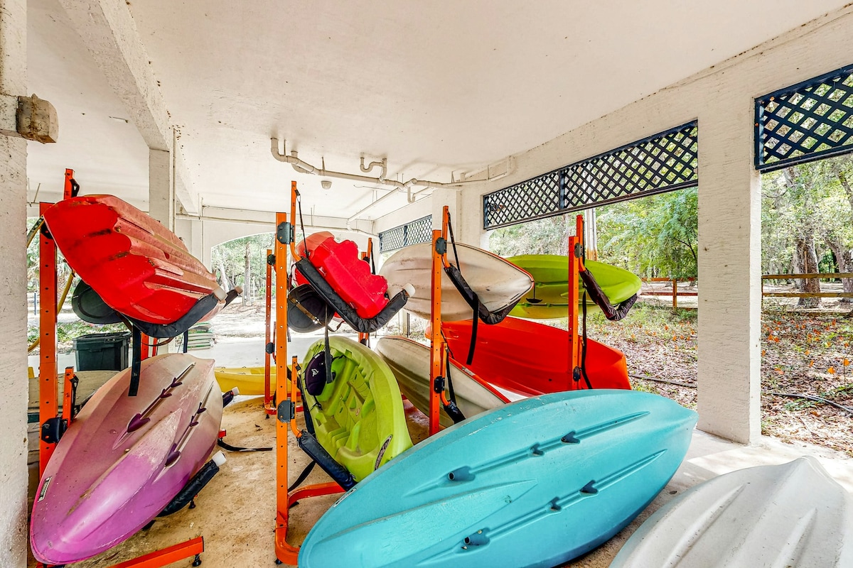 Ein herrlicher und sonniger Kurzurlaub erwartet dich, wenn du diese Ferienwohnung in Nordflorida buchst. Finde Abenteuer auf diesem fähigen Grundstück mit einer Bootsrampe und Bootsrutsche für Aktivitäten auf dem Wasser, wie Angeln und Kajakfahren. Fordere deine Lieben zu etwas Spaß mit freundlichen Spielen auf dem Volleyballplatz, Basketballplatz, Shuffleboard, Tetherball oder lass die Kinder auf der Schaukel und Hufeisen spielen. Mache ein malerisches Picknick an den nahe gelegenen Quellen, um eine malerische Aussicht zu genießen, während du isst.