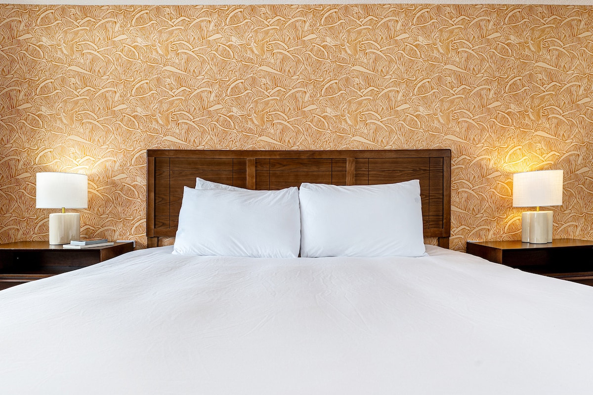 Entfliehe in die Ruhe des Blue Mushroom Room, einem durchdacht eingerichteten Rückzugsort, der von der Schönheit der hoch aufragenden Kiefernwälder Michigans inspiriert ist. Dieses Zimmer ist perfekt für zwei Personen und verfügt über ein komfortables Kingsize-Bett, einen gemütlichen Essbereich und alle wichtigen Dinge für deinen Aufenthalt, einschließlich einer Kommode, eines Kleiderschranks und eines Smart-TVs. Moderne Annehmlichkeiten wie ein Frigidaire-Minikühlschrank, eine Mikrowelle, eine Ninja-Kaffeemaschine und ein Marshall-Lautsprecher stehen dir zur Verfügung.