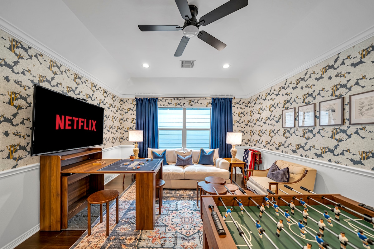 Experience the perfect mix of charm and outdoor fun in this stylish retreat. Perfect for families, groups, or business travelers, this home has everything you need for a memorable stay. 3 bedrooms, 2.5 baths + quaint outdoor lounge area, foosball table, poker room, fireplace, large projector screen in media area, outdoor dining, and several games! Nestled in Houston’s trendy Heights neighborhood—walk to top-rated restaurants, shops, parks, and trails. Sleeps your group of 6, comfortably.