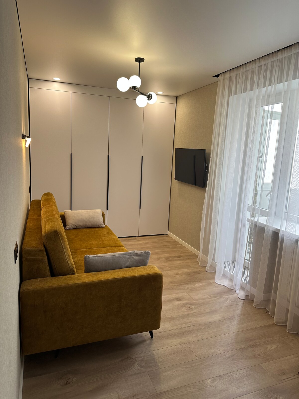 Gemütliches, sauberes und komfortables Studio am zentralen Boulevard der Stadt. Ein großes Doppelbett und ein Sofa (bequem für ein Kind oder einen Erwachsenen) warten auf dich, das heißt, die Wohnung ist komfortabel für drei Erwachsene oder ein Paar mit einem Kind. Wir haben alles für deine komfortable Erholung und Entspannung. Unsere Gäste sind sowohl bei einem kurzen Aufenthalt als auch bei einem Aufenthalt von mehr als einem Monat zufrieden.