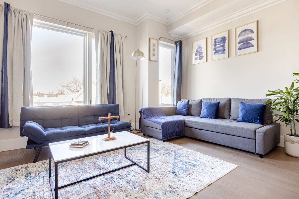 Luxuriöse Wohnung mit 3 Schlafzimmern/3 Bädern und einem riesigen privaten Hinterhof | Minuten von NYC entfernt Tritt in diese tadellos gestaltete Residenz mit 3 Schlafzimmern und 3 Bädern im Herzen von Jersey City ein. Diese atemberaubende Wohnung wurde für Gäste geschaffen, die Raffinesse, Komfort und Stil suchen. Sie verfügt über hochwertige Oberflächen, durchdachte Details und moderne Annehmlichkeiten. Nur 5 Minuten von der PATH-Station Journal Square entfernt, genießt du einen nahtlosen Zugang zu New York City in weniger als 30 Minuten.