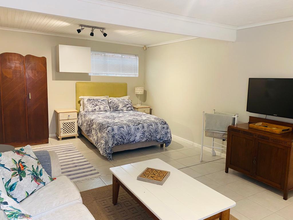 Unser sicheres Gartenhaus verfügt über einen eigenen Eingang, mit Nutzung des Swimmingpools und der Braai-Einrichtungen. Die Unterkunft ist neu renoviert und verfügt über Bettwäsche aus ägyptischer Baumwolle, eine Küchenzeile mit Kühlschrank, eine Mikrowelle und einen Wasserkocher. Tee, Kaffee, Milch und Wasser in Flaschen werden bereitgestellt. Geräumige Dusche im Badezimmer. Unbegrenztes WLAN, ein Schreibtisch für die Arbeit sowie Netflix und Showmax sind verfügbar. Genieße Sundowner auf unserer Terrasse mit Blick auf den Pool. Zudem hast du einen eigenen privaten Sitzbereich im Freien, der sich perfekt für Mahlzeiten im Freien eignet.