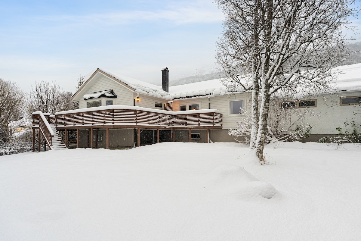 Entspanne dich mit deiner ganzen Familie oder einer Gruppe von Freunden in dieser ruhigen Residenz am malerischen Berg. Hier gibt es einen schönen Blick auf die Berge und das Meer. Berg liegt in einer 15-20-minütigen Fahrt in der Nähe des Stadtzentrums von Tromsø und bietet die Nähe zu vielen tollen Naturerlebnissen. Hier ist das Meer und die Quelle direkt unter der Ausgangstür Es ist ein kostenloser Parkplatz direkt vor der Wohnung. Hier sind die Nordlichter direkt vor der Haustür an klaren, schönen Tagen zu sehen! Die Wohnung befindet sich im Erdgeschoss.