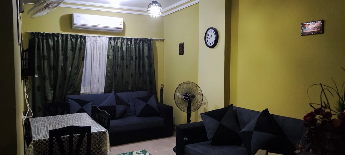 Blue Pearl Apartment – stilvolle Escape in Hurghada! 🏝️ Willkommen in Blue Pearl, einer modernen 70 m² großen Wohnung mit einem Schlafzimmer in El Kawther, Hurghada! Genieße ein gemütliches Schlafzimmer, einen stilvollen Wohnbereich, eine voll ausgestattete Küche, schnelles WLAN, Smart-TV und Zugang zum Pool. Perfekt gelegen, 5 Minuten vom Flughafen entfernt, in der Nähe von Dream Beach & Mahmya Beach und nur wenige Schritte von Cafés, Läden und der Memsha Promenade entfernt. Dein perfekter Kurzurlaub erwartet dich - buche jetzt! 🌞
