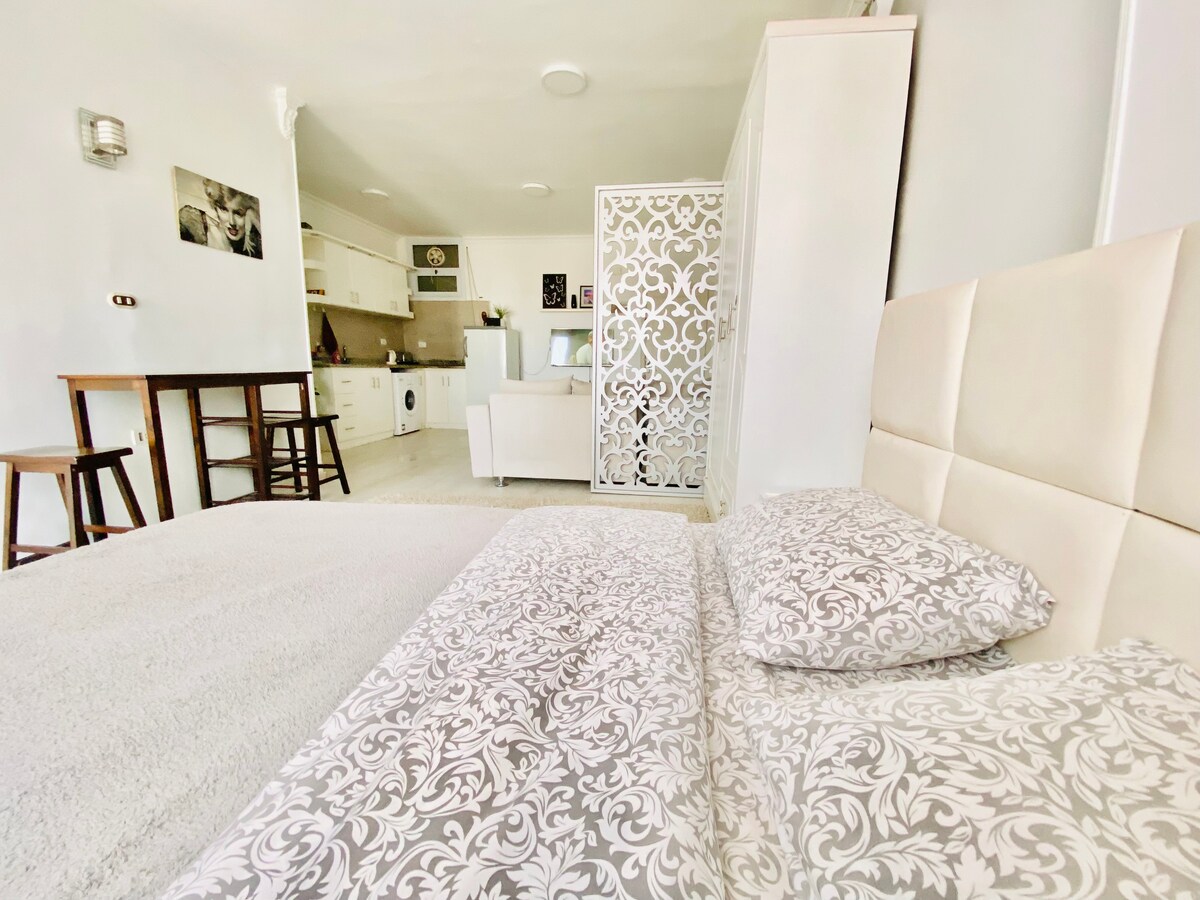 Halte es an diesem ruhigen und zentral gelegenen Ort einfach. Es befindet sich im ersten Stock, sodass du die besondere Privatsphäre genießen kannst, ruhig und erstaunlich mit herrlichem Blick auf den Pool, dann bleibst du im Zentrum des touristischen Gebiets, verbunden mit der AlDau Mall, wenn du die Straße überquerst, findest du alle schnellen und köstlichen Restaurants, dann findest du viele Zugangsstrände mit Rabatt bei uns, du findest 3 schöne Swimmingpools, du wirst die schöne Terrasse genießen, kostenloses WLAN, kostenloser Parkplatz