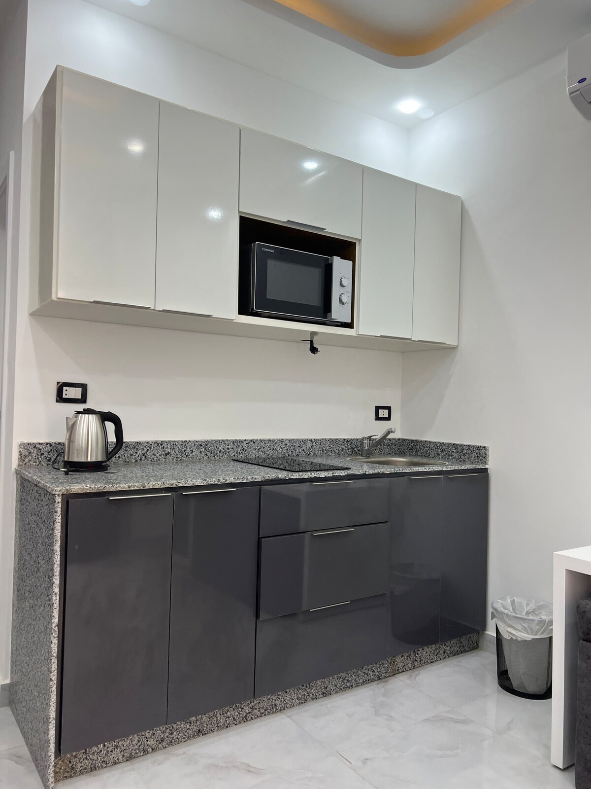 Wir hier in Lilly Apartments bieten Hurghada eine servierte Ferienunterkunft an. Wir haben 32 Wohnungen und Studios. Wir haben eine schöne, einfache, dekorierte Rezeption und einen einzigartigen Dachbereich mit fantastischer Aussicht und einen Pool auf dem Dach mit Whirlpool. Alle unsere Möbel und Zugänge von IKEA und Enza zuhause. Alle unsere Einheiten verfügen über eine Küchenzeile, die komplett mit Mikrowelle, Kühlschrank und Herd und Reinigungspersonal ausgestattet ist. Wir bieten Mahlzeiten, Wäscheservice, Reinigungsservice gegen Aufpreis