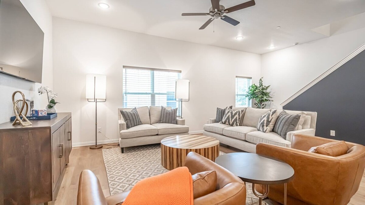Was du ❤️ über deinen Aufenthalt wissen solltest: - Zentral im Herzen von Arlington gelegen - Nur wenige Minuten vom AT&T-Stadion, Texas LIVE, Globe Life Field, Six Flags, Hurricane Harbor, University of Texas in Arlington, Billy Bob's of TX, Famous Stockyards of Fort Worth und DFW Airport entfernt - 19 Minuten Fußweg zum AT&T-Stadion - Nur wenige Gehminuten von Geschäften, Restaurants und Bars entfernt - Feuerstelle/Grill/Essen im Freien - voll ausgestattete Küche (Kapseln/Kaffee vorhanden) - High-Speed-Internet - (3) Smart-TVs - Waschmaschine und Trockner in voller Größe