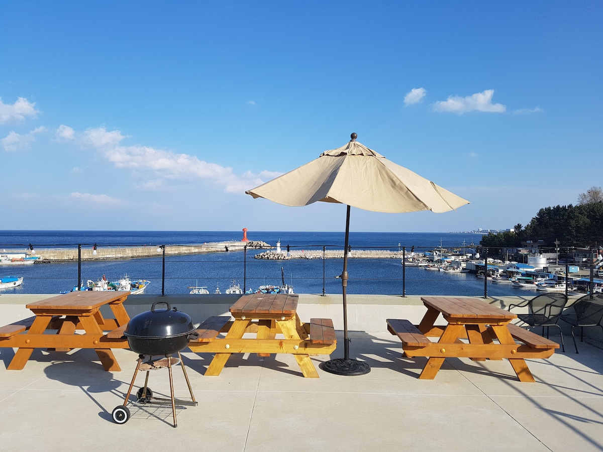 Die Unterkunft ist von Pinienwäldern und immergrünen Bäumen umgeben, sodass du das Meer, die Berge und die Landschaft genießen kannst, während du heilst, und es ist ruhig, weil es mäßig weit vom Dorf entfernt ist. Von der Unterkunft bis Namyangyang IC, 2 km, 100 m von der East Coast National Road No. 7 und der Küstenstraße entfernt, entlang der Haeparang Road, Gangwon-dos 3 wichtigsten Häfen, Namhae Port und Surfmekka, Ingu, und der nächste Strand zur Unterkunft, Wonpori Beach, ist 150 m entfernt. Es ist leicht, zu den Sehenswürdigkeiten rund um die Unterkunft zu gelangen, mit dem Jumunjin-Hafen 5-10 Minuten mit dem Auto, Gangneung 25 Minuten, Yangyang 30 Minuten und Sokcho 40 Minuten entfernt. Es gibt auch Surfshops und Tauchshops in der Nähe, wo du eine Vielzahl von Wassersportarten genießen kannst. Unsere Unterkunft beeinträchtigt die Privatsphäre des Gastes nicht, da der Gastgeber während des Aufenthalts nicht anwesend ist.
