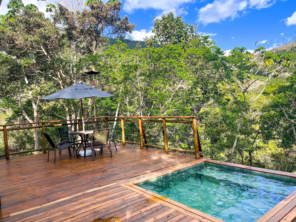 A Vila Araponga traz a experiência de reconexão com a natureza através de Casas na montanha. A Casa Ingá oferece uma experiência de imersão e reconexão com a natureza. Localizada dentro da floresta, envolta por árvores com mais de 10m de altura, lá se ouve o canto da natureza! Um destaque a enorme varanda frente ao imponente pé de Ingá. A cozinha super equipada e espaçosa cercada por uma vista verde. E o mezanino no segundo andar onde é possível ver a copa das enormes árvores na montanha.