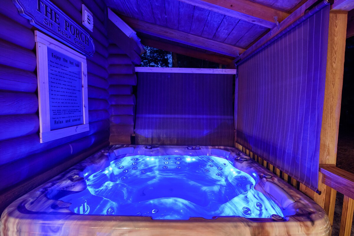 Das Ichetucknee Springs Log Cabin ist das nächstgelegene Airbnb zur weltberühmten Quelle der Ichetucknee Springs/River. Dieses schöne, vollständig maßgeschneiderte, authentische Blockhaus mit 3 Schlafzimmern und 2 Bädern. (Tucknee Inn) hat schöne Holztierschnitzereien und Flusstische im ganzen Haus. Entspanne dich draußen im Whirlpool oder erzähle Lagerfeuergeschichten in unserem speziell gebauten Feuerstellenbereich. Die Hütte verfügt auch über eine riesige, maßgefertigte Felsdusche, ein großes Loft, das als zweites Wohnzimmer fungiert, und geräumige Schlafzimmer.