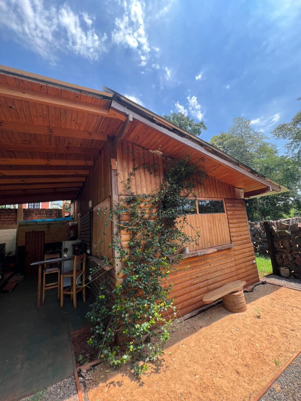 Holzhütte mit natürlichem Pool im Barrio Las Orquideas, in einer sehr ruhigen Straße, umgeben von Vegetation und Vögeln. Es verfügt über ein Schlafzimmer mit Doppelbett und geteilter Klimaanlage + 2 Einzelbetten, voll ausgestattete Küche, WLAN, Parkplatz. 50 Meter von Arroyo Mbocai entfernt.