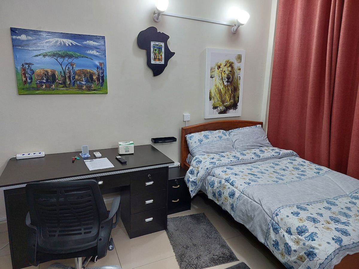 Willkommen in deinem modernen Rückzugsort in Daressalam! Unsere Unterkunft, die liebevoll The Little Forest genannt wird, liegt inmitten von üppigem Grün und bietet einen ruhigen Rückzugsort mit modernem Komfort. Genieße ein stilvolles Interieur mit Holzakzenten, einem gemütlichen Bett, einer TV-Lounge, einem Arbeitsbereich und einer gut ausgestatteten Küche. Das Hotel liegt in der Nähe von Kimara Stopover (nicht im Stadtzentrum!). Keine Haustiere erlaubt. Perfekt für Alleinreisende, Paare und Geschäftsreisende Hinweis: Gäste gehen fälschlicherweise in die Innenstadt. Verwende Google Maps für Wegbeschreibungen.