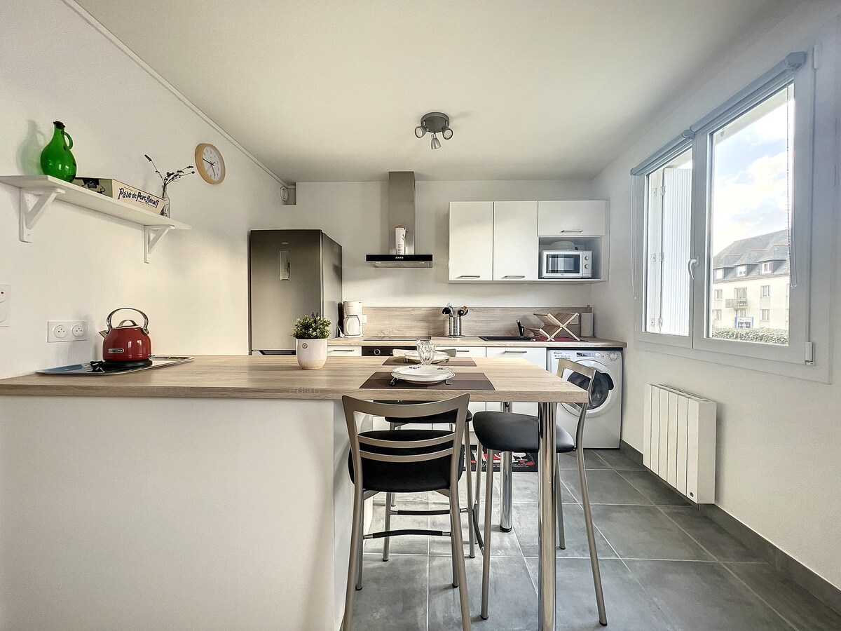 Ty Ni ist eine alte Scheune, die zu einem gemütlichen Tiny House von dreißig Quadratmetern voller Charme und ideal gelegen ist. 6 Minuten zu Fuß von der Straßenbahn und den Bussen entfernt, erreichen Sie schnell die Arena, das Stadtzentrum oder das Technopole. Etwas weiter entfernt befinden sich die Reede und der typische Hafen des Weißen Hauses. Egal, ob Sie für die Arbeit, für ein Konzert oder für ein paar Tage Urlaub nach Brest kommen, Ty Ni ist der ideale Anker, um Brest, das Land von Iroise und das nördliche Finistère zu entdecken.