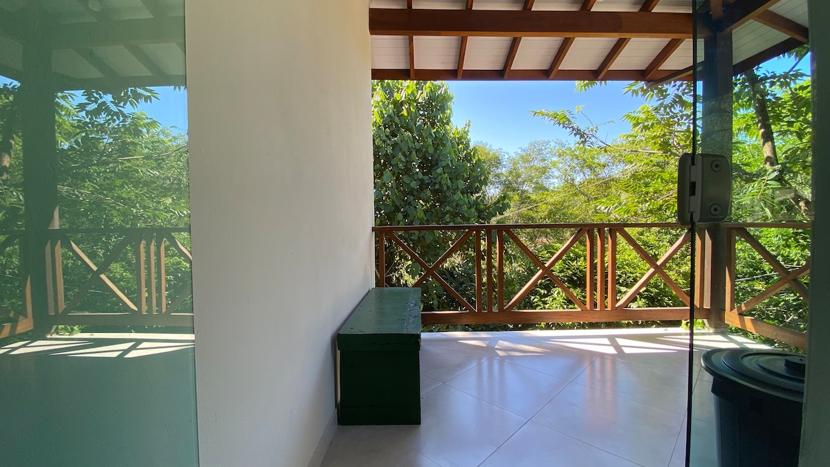 800 m von der Fähre entfernt, ist dieses Haus ein Juwel: in den 70er Jahren im Schatten eines hundertjährigen Mangobaums gebaut, mit doppelten Ziegelwänden und einem Zwischengeschoss aus Ipé-Holz. Es ist komplett renoviert, um Reisende zu empfangen, die Komfort inmitten der Natur suchen! Es ist klimatisiert und verfügt über eine voll ausgestattete Küche, drei Schlafzimmer, davon zwei Suiten. Es gibt drei geräumige Badezimmer. Das Wohnzimmer hat einen Smart-TV und die Küche hat sechs Sitzplätze am Tisch aus rosa Peroba-Holz. Draußen gibt es einen Grill, einen Herd und einen Holzofen, einen Esstisch, eine Hängematte und ein Waschbecken.
