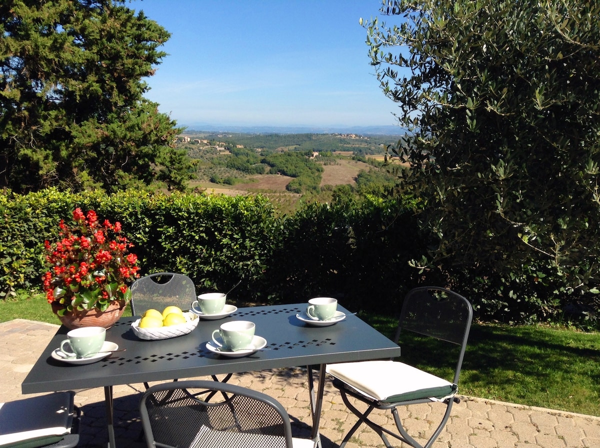 Das Ferienhaus ist Teil eines charmanten traditionellen toskanischen Bauernhauses, das in Stein gebaut wurde und sich in einer der schönsten Gegenden der Toskana befindet.Ein schöner Garten umgibt das Haus und bietet einen herrlichen Blick auf die mittelalterliche Stadt mit ihren berühmten Türmen.