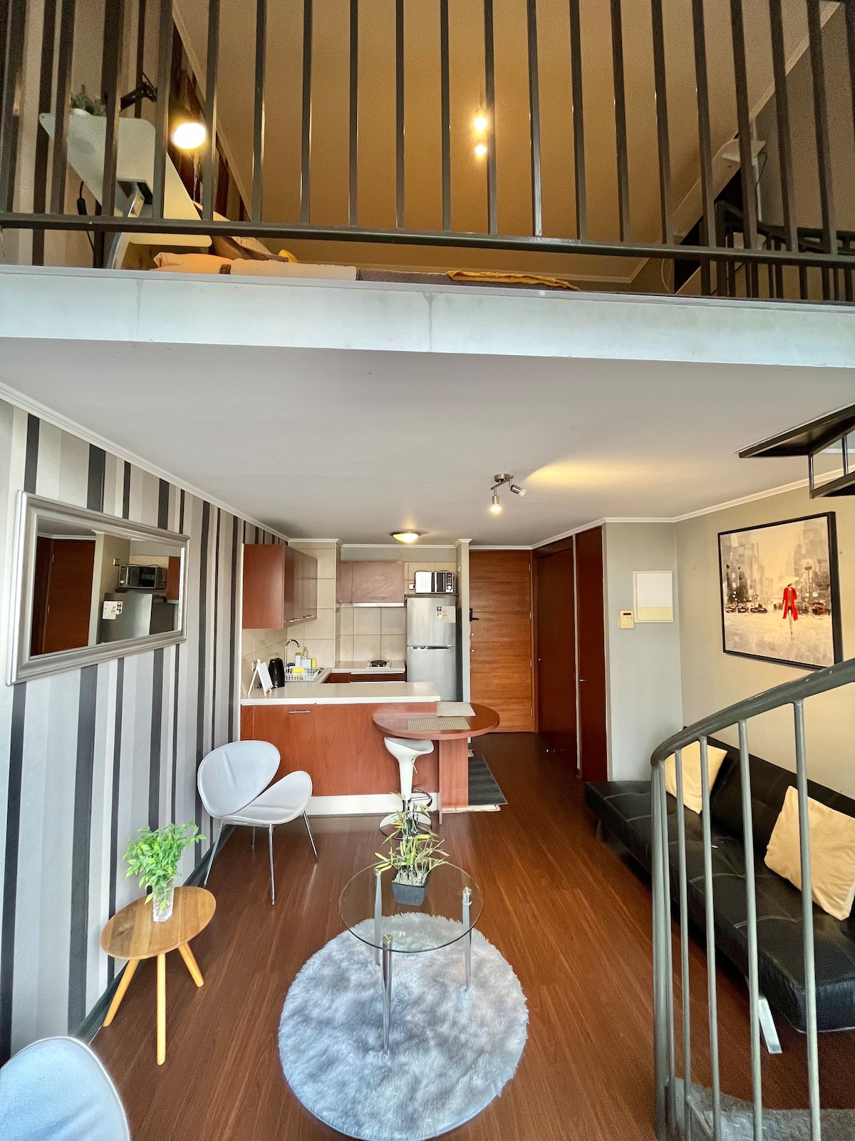 Moderne Wohnung mit einem schönen Blick auf die Bergkette 🤍 Das Hotel liegt in einem zentralen und ruhigen Bereich, einen Block von der U-Bahn Conchalí, 15 Minuten vom Flughafen, 10 Minuten von der Innenstadt von Santiago und weniger als 5 Minuten zu Fuß von der Rennstrecke Chile und dem Stadion Santa Laura entfernt. 1 Schlafzimmer + Schlafsofa im Wohnzimmer Ausgestattete Küche Privates Badezimmer Balkon mit Blick auf die Bergkette WLAN und TV mit Apps Voll ausgestattet Modern, komfortabel und minimalistisch Swimmingpool, Fitnessstudio, Quincho, Co-Work- und Veranstaltungsraum