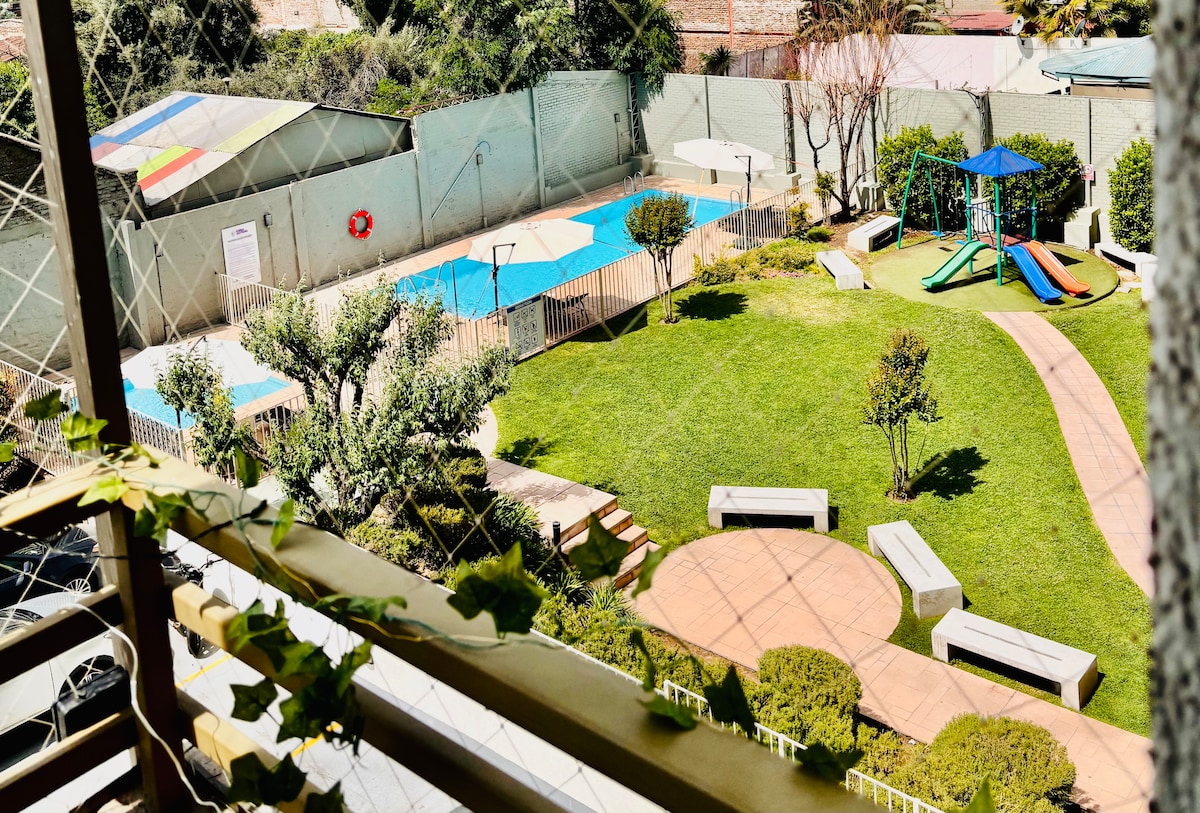 Genieße eine elegante und komfortable Wohnung in Independencia, nur wenige Schritte von der U-Bahn Plaza Chacabuco und Minuten vom Zentrum von Santiago entfernt. Ideal für Paare oder Familien. Sie verfügt über 2 Schlafzimmer, 1 Badezimmer, eine Küchenzeile, eine Terrasse und ein Wohnzimmer. Gebäude mit Pool und Quincho. Hervorragende Anbindung an Sehenswürdigkeiten, Parks, Museen und Restaurants. Vive Santiago von einem modernen, warmen und günstig gelegenen Raum. Wir sind haustierfreundlich🐾! Parkmöglichkeiten im Gebäude. 🅿️