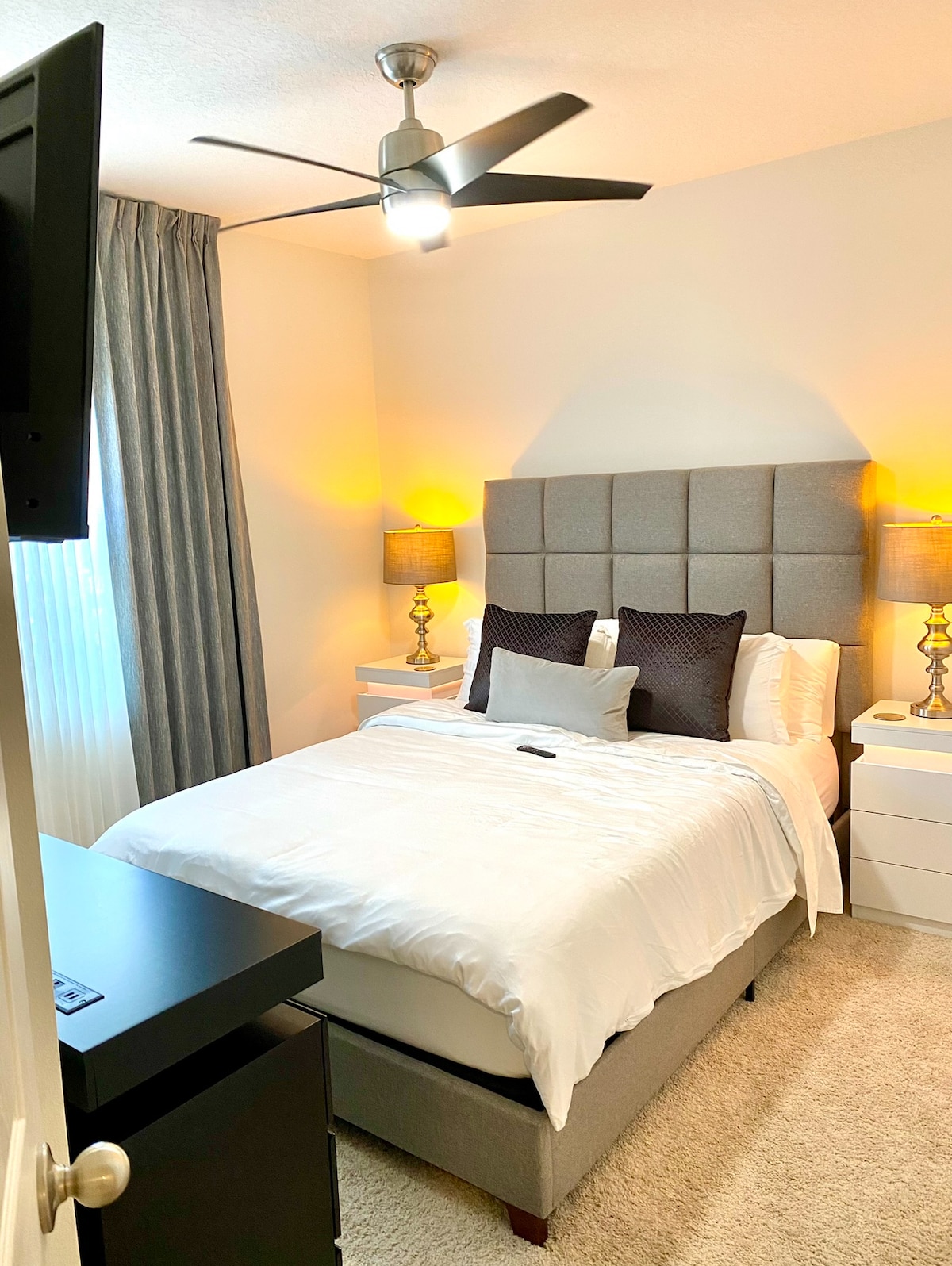Fühl dich in unserer völlig privaten Wohnung wie zu Hause, in einer ruhigen Gegend mit allem, was du für einen erholsamen Aufenthalt brauchst. Entspanne dich im Komfort eines geräumigen Kingsize-Bettes und eines gemütlichen Queensize-Schlafsofas, das ausreichend Platz für zusätzliche Gäste bietet. Neu hinzugefügte Waschmaschine und Trockner in der Einheit für eine schnelle Wäsche. Mit einem eigenen privaten Eingang und sicheren und kostenlosen Parkplätzen wirst du die Freiheit genießen, nach Belieben zu kommen und zu gehen. Bleibe mit kostenlosem Highspeed-WLAN und Smart-TVs im Schlafzimmer und Wohnzimmer in Verbindung.