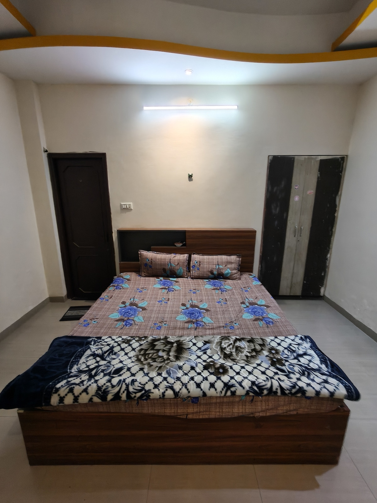 🌿 Gemütliches Privatzimmer mit Terrasse, Garten und WLAN Überblick Willkommen in deinem ruhigen Rückzugsort in Indore — einem gemütlich eingerichteten Privatzimmer in einem Bungalow mit einem komfortablen Doppelbett, eigenem Bad, Klimaanlage und WLAN. Zimmer im dritten Stock mit Zugang nur über die Treppe Die Highlights • Zugang zum Terrassengarten • Elegantes privates Badezimmer • Zuverlässige WLAN-Verbindung • Klimatisiertes Zimmer Gäste-Entdeckung • Ruhige Wohnbungalowanlage • Perfekt für Gäste unter 55 Jahren