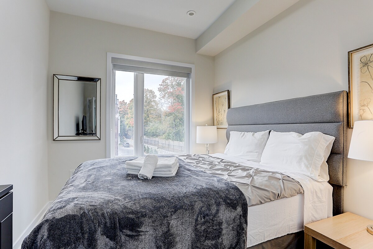 Eingebettet in die charmante Stadt Bradford liegt diese stilvolle und sonnige Wohnung. Ideal für Paare und kleine Familien, die einen kurzen oder langen Urlaub suchen. Im Inneren findest du eine voll ausgestattete Küche mit allen Utensilien, die du brauchst, um zu backen, was immer du möchtest! Essbereich/Arbeitsbereich, private Waschküche, Schlafzimmer mit viel Stauraum und ein komplettes Badezimmer. Gehe zu einer grasbewachsenen Fläche hinaus. Nur wenige Minuten von Einkaufsmöglichkeiten, Restaurants, Bushaltestelle, GO-Zug, Parks und vielem mehr entfernt!