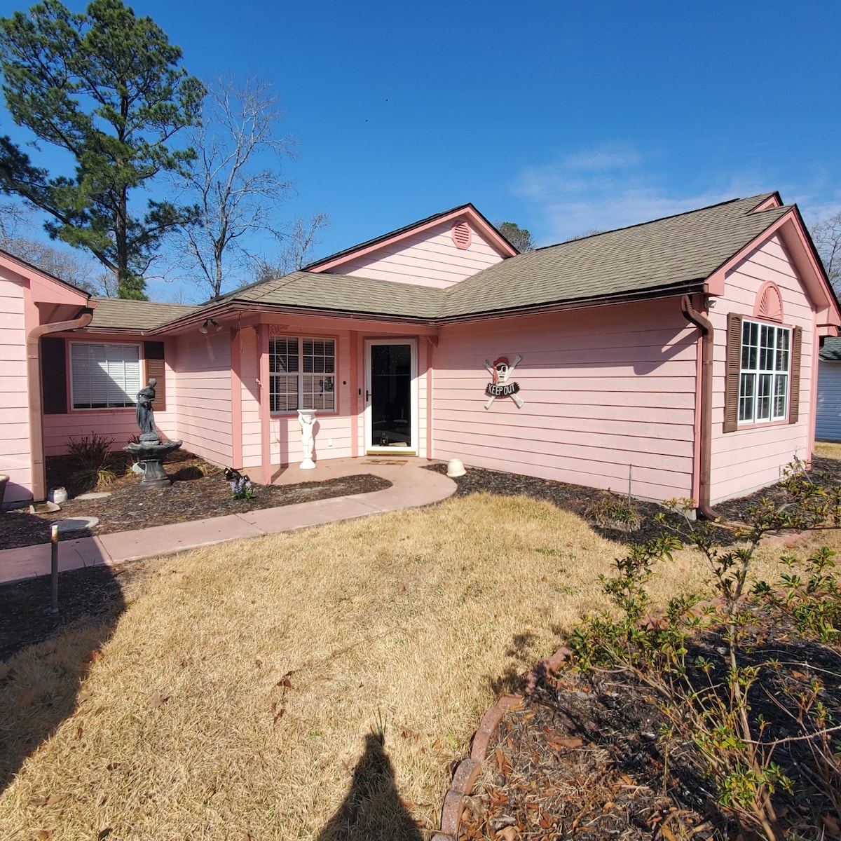 Entspanne dich auf dem Land mit allen Annehmlichkeiten: WHIRLPOOL, POOL, Billardtisch, atemberaubende Sonnenuntergänge und Sterne in der Nacht, Basketballkorb, Volleyball, Feuerstelle, Grill, gefüllter Teich mit Ruderboot, Wander- oder ATV-Weg und eine große Terrasse. Während du deine Marine (20 Meilen nach Camp Lejeune) besuchst oder im Urlaub in diesem privaten Stück Paradies (8 Acres) bist, 20 Minuten zum Haupttor oder 25 Minuten zum New River. Der Strand ist nur 25 Minuten entfernt. Der kleine Teich ist bestückt. Partys oder Veranstaltungen sind in der Unterkunft nicht erlaubt, danke.