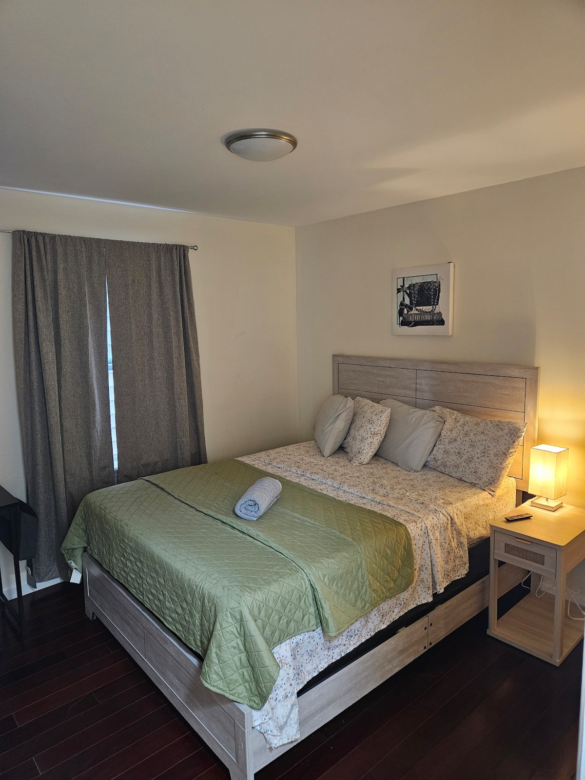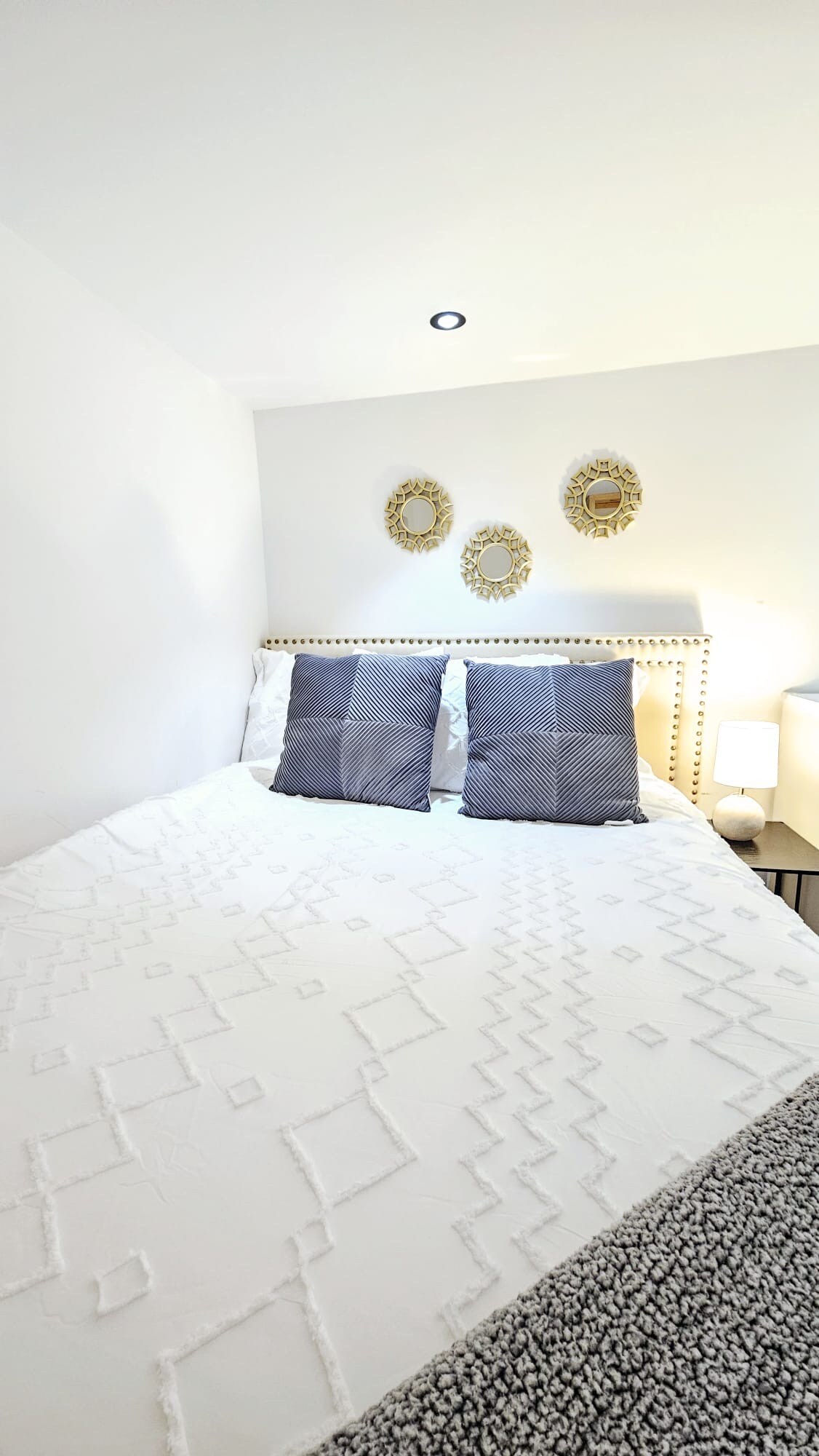 Dieses sorgfältig eingerichtete Studio im Japandi-Stil ist perfekt für mobiles Arbeiten oder einen ruhigen Rückzugsort. Die Unterkunft verfügt über ein gemütliches Queensize-Bett, ein kleines Zweiersofa und einen Sitzbereich. Genieße Highspeed-Internet, TV und einen Schreibtisch für Produktivität. Die Suite verfügt über eine Küchenzeile mit einem Kühlschrank, einer Mikrowelle und einer Kaffeemaschine. Die Unterkunft liegt in einer ruhigen und sicheren Gegend und bietet Zugang zu einer Feuerstelle im Hinterhof, um dich zu entspannen. Ideal für einen ruhigen, komfortablen und produktiven Aufenthalt.