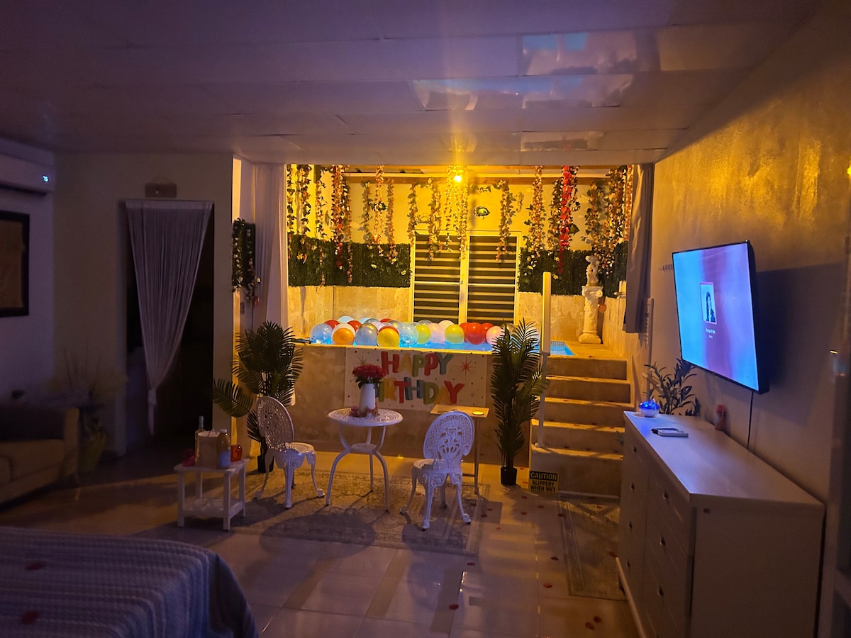 Plan a relaxing getaway while enjoying a private pool with sundeck, fire pit, 100-inch screen projector, gazebo, and pool table that are exclusive for the guests of Lunabela. This special place is just a 10-minute drive from both the beach and Guajataca River, and within walking distance to the mall, restaurants, and bakeries, making it easy to plan your visit and explore Isabela. The unit has a fully stocked kitchen, AC, king-size bed, Wi-Fi, TV, free parking space, BBQ grill, and board games.