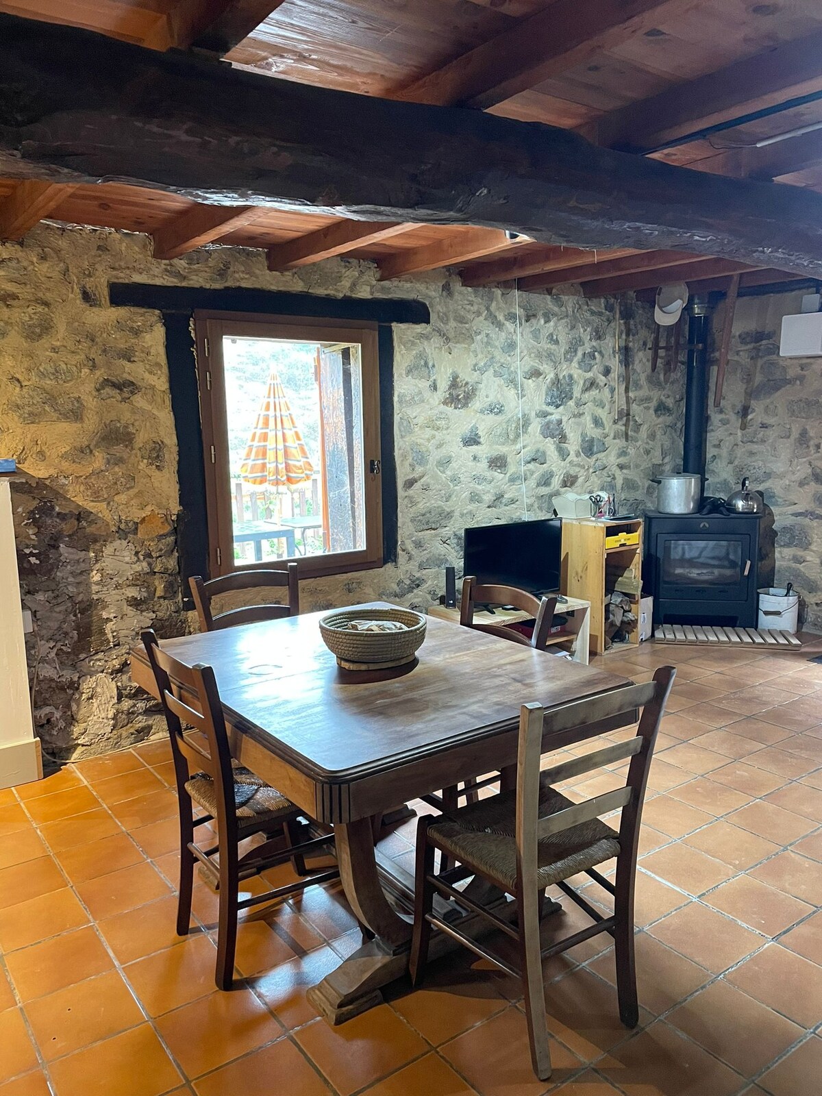 Die nach Süden ausgerichtete Scheune liegt außerhalb eines kleinen, ruhigen Weilers (Höhe 800 m) am Ende einer kurvenreichen Straße und bietet einen Panoramablick auf die Berge. Sie ist von Feldern und Wäldern umgeben - ohne Gegenüber! Die komplett mit ökologischen Materialien renovierte Gite bewahrt den Charme und die Authentizität einer Pyrenäenwohnung, aber mit dem Komfort eines speziell gebauten Gite. Die Scheune ist für jeden geeignet – Paare, Alleinreisende, Familien mit Kindern und Spaziergänger mit ihren vierbeinigen Freunden.