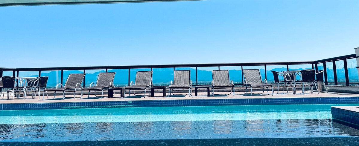 9. Stock, 100 m vom Strand entfernt und privilegierter Blick auf das Meer und Sehenswürdigkeiten: Christus der Erlöser, Zuckerhut und ein schöner Sonnenuntergang von der Veranda der Wohnung! Luftig, sauber, gut ausgestattet, tolle Lage für sichere Freizeit, mit Stränden und Pools! Ideal für „Home Office“ mit außergewöhnlicher Aussicht und allen Annehmlichkeiten, die das Aparthotel bietet! Restaurant mit Zimmerservice, Fitness- und Kinderbereich, Wäscherei und Parkplatz. Uferpromenade mit Kiosken und Promenade für Spaziergänge und Wanderungen!