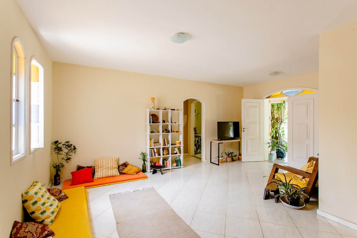 Acomodação confortável com ar condicionado, tv smart 50" com tv a cabo e Netflix, ventilador de teto, cabideiro, banheiro, cozinha com cocktop duas bocas (proibido frituras), frigobar, micro ondas, sanduicheira, liquidificador e acessórios, 10min a pé da praia mais bela de Niterói, lanches, bares, mercado, farmácia e mais; passeios de bike, trilhas, caminhadas e surf (Itacoatiara faz parte do circuito internacional e nacional de bodyboard e ondas grandes).Não é permitido fumar dentro da suíte.