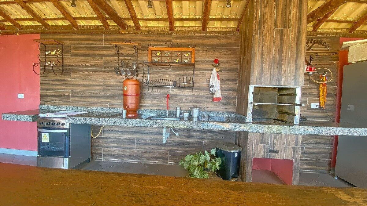 Recanto J&J – Itaguara, Minas Gerais Ruhiges und gemütliches Haus für Familientage. Platz für bis zu 6 Personen, mit 2 Schlafzimmern, einem zusätzlichen Schlafzimmer, einem Schlafsofa und 1 Badezimmer. Balkon mit Holzofen und Grill. Außenbereich mit Whirlpool, Pergola, Spielplatz und Doppelschaukel. WLAN und Haustiere willkommen. Ideal zum Entspannen und für gute Erinnerungen. Verfügbarkeit prüfen!