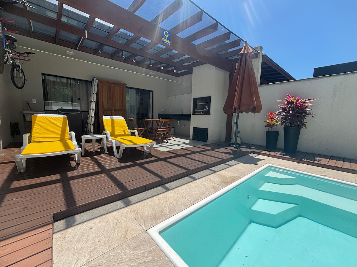 Privates einstöckiges Haus für bis zu 6 Personen, mit einem surrealen Außenbereich mit Blick auf den Strand Barra do Saí. Bring nur das mit, was du essen, trinken und tragen wirst, da das Haus komplett ist. WLAN, Klimaanlage, Bettwäsche, Handtücher, Shampoo, Spülung, komplette Strandausrüstung, 2 Smart-TVs mit IPTV, Grill und 2 Fahrräder, damit du nach Belieben fahren kannst. Außenbereich mit rustikalem Tisch, Pergola, überdachter und beheizter Whirlpool mit Hydromassage und Chromotherapie und einem fantastischen privaten Kino. Wir sind haustierfreundlich