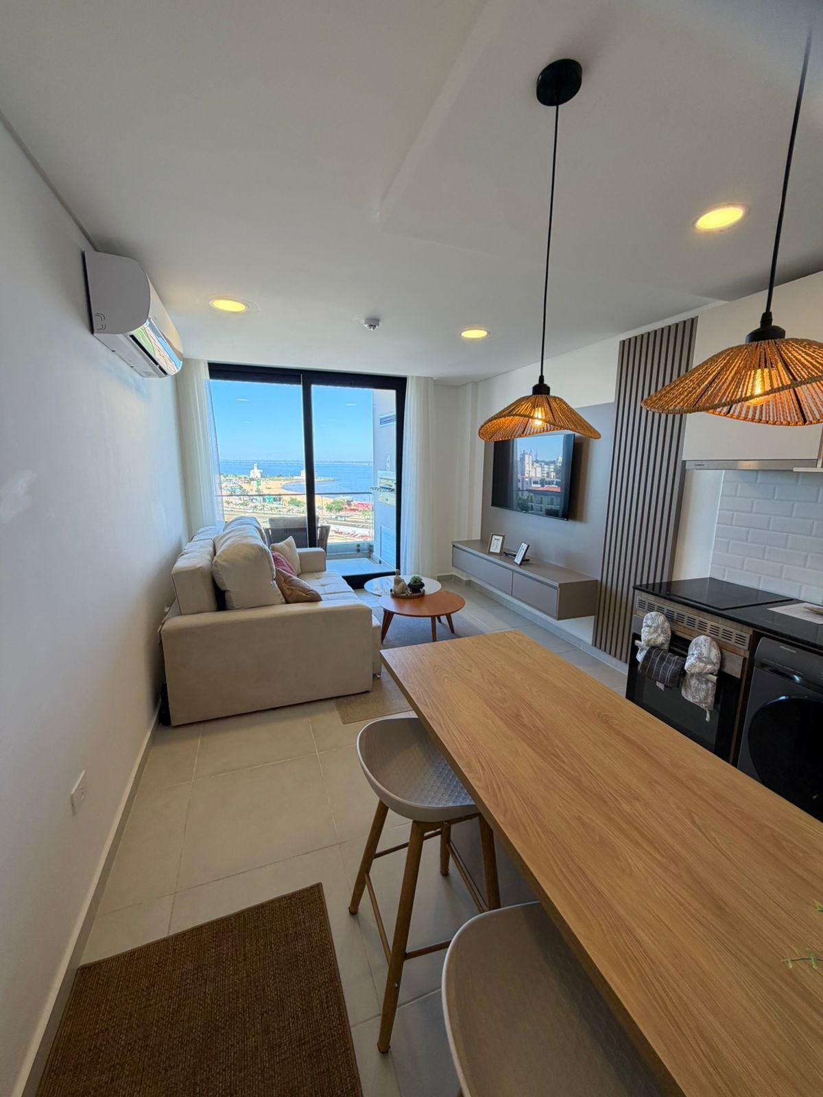 Dieser schöne möblierte Apartmentbereich Shopping Costanera Encarnación, Balkon mit Blick auf den Fluss, verfügt über zwei komfortable Zimmer, ein eigenes Bad mit eigenem Bad, eine möblierte Küche 🍽️ und ein integriertes Esszimmer, das eine geräumige und moderne Atmosphäre schafft. Es bietet auch Parkplätze. Es ist eine tolle Gelegenheit für diejenigen, die Komfort suchen. Zusätzliche Dienstleistungen: -Wiffi -3 SMART TV - Grundlagen des Kochens - ein Elektroherd - Elektrische Küche -Mikrowelle -Lavarropa -Hervidora -Mixtera