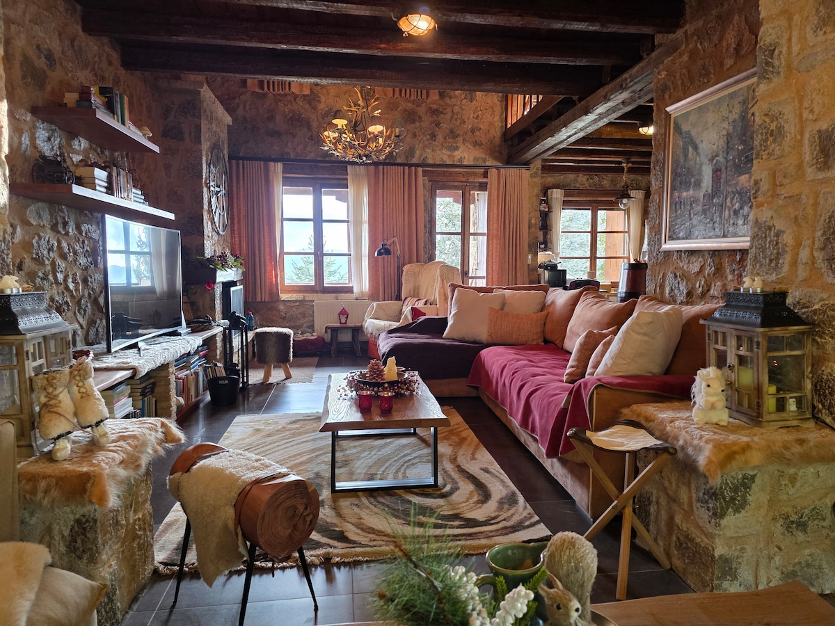 Kick back and relax in this calm, stylish space. At the foot of Parnassos, in Livadi is a tasteful small beautiful house, warm and welcoming for friends, family ideal for ski lovers, hiking or life on the mountain. A traditional stone house, with wooden flooring, tastefully decorated has all the modern comforts. A short mileage from Parnassos Ski Center, Eptalofos, Arachova, Delphi, Pavliani, Variani, Gravia, Amfikleia and Polydrosos.