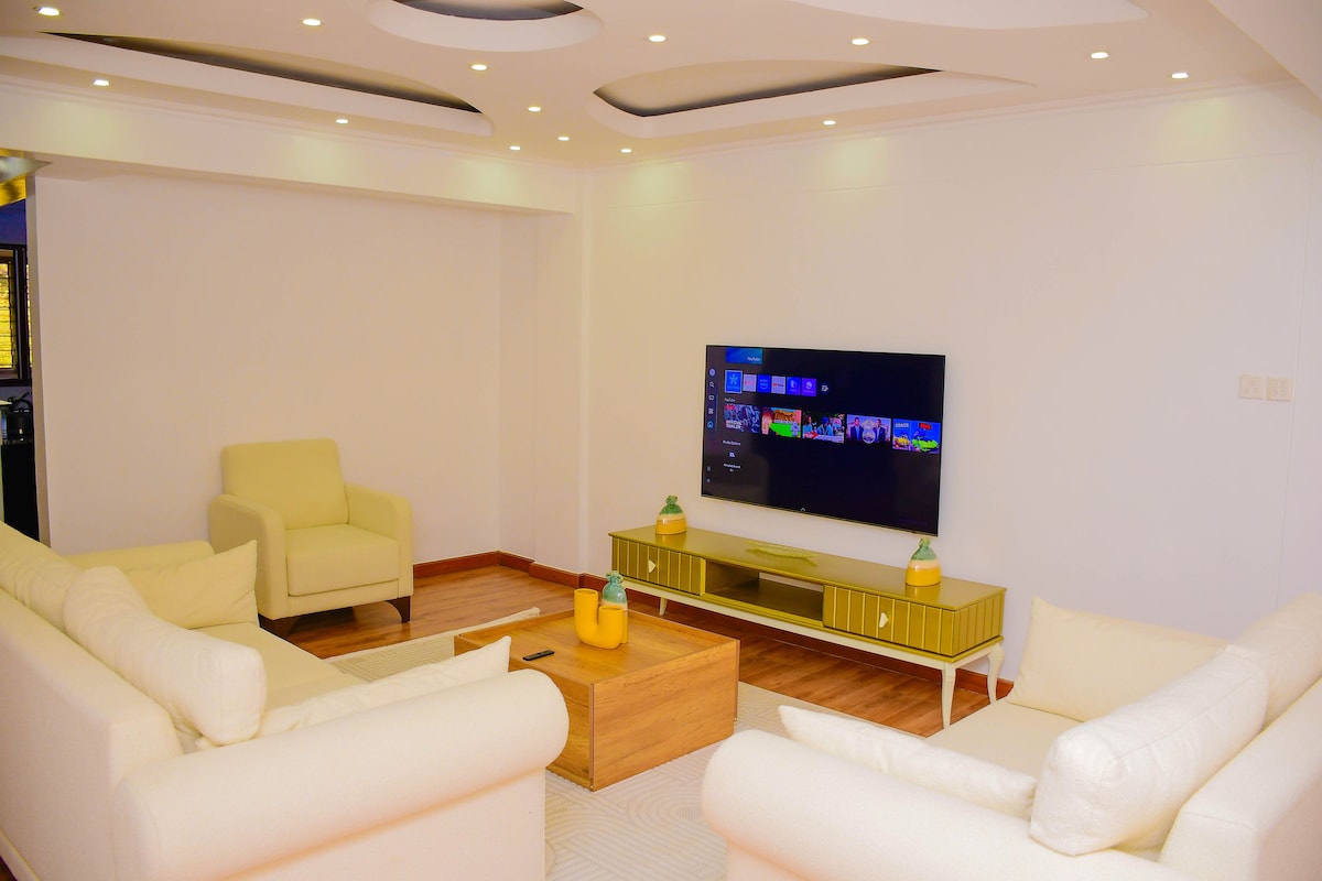 Die Vogue Villa – dein luxuriöser Rückzugsort im Herzen von Eldoret. Diese stilvolle Villa mit drei Schlafzimmern liegt nur wenige Schritte von der legendären Rupa's Mall entfernt und bietet die perfekte Mischung aus moderner Eleganz, Komfort und Bequemlichkeit. Tritt ein in wunderschön kuratierte Innenräume mit geräumigen Wohnbereichen, einer voll ausgestatteten Küche und Schlafzimmern in Hotelqualität, die für pure Entspannung ausgelegt sind. Genieße Highspeed-WLAN, Smart-TV, luxuriöse Lounge-Möbel und einen Balkon mit Blick auf die Stadt — alles in einer sicheren, ruhigen Gegend.