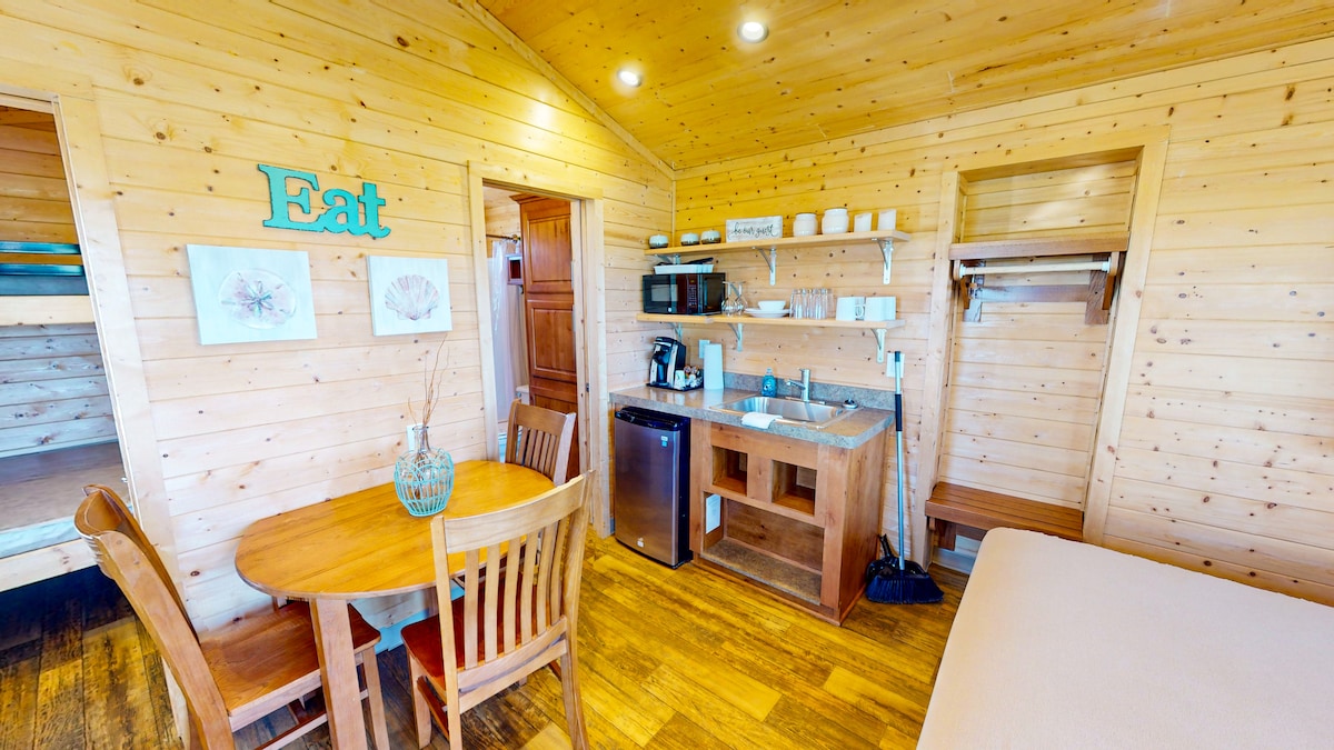 Eine seltene Kombination aus Camper, Angelrückzugsort mit dem Schutz einer 40 x 50 Scheune mit vollen Wohnmobilanschlüssen. Im Inneren befindet sich eine voll möblierte 20 x 25 Studio-Wohnung. Es gibt Platz für ein Wohnmobil in voller Größe mit Anschlüssen oder ein Boot. Die Einzimmerwohnung verfügt über einen großen Smart-TV und WLAN sowie ein komplettes Badezimmer.
