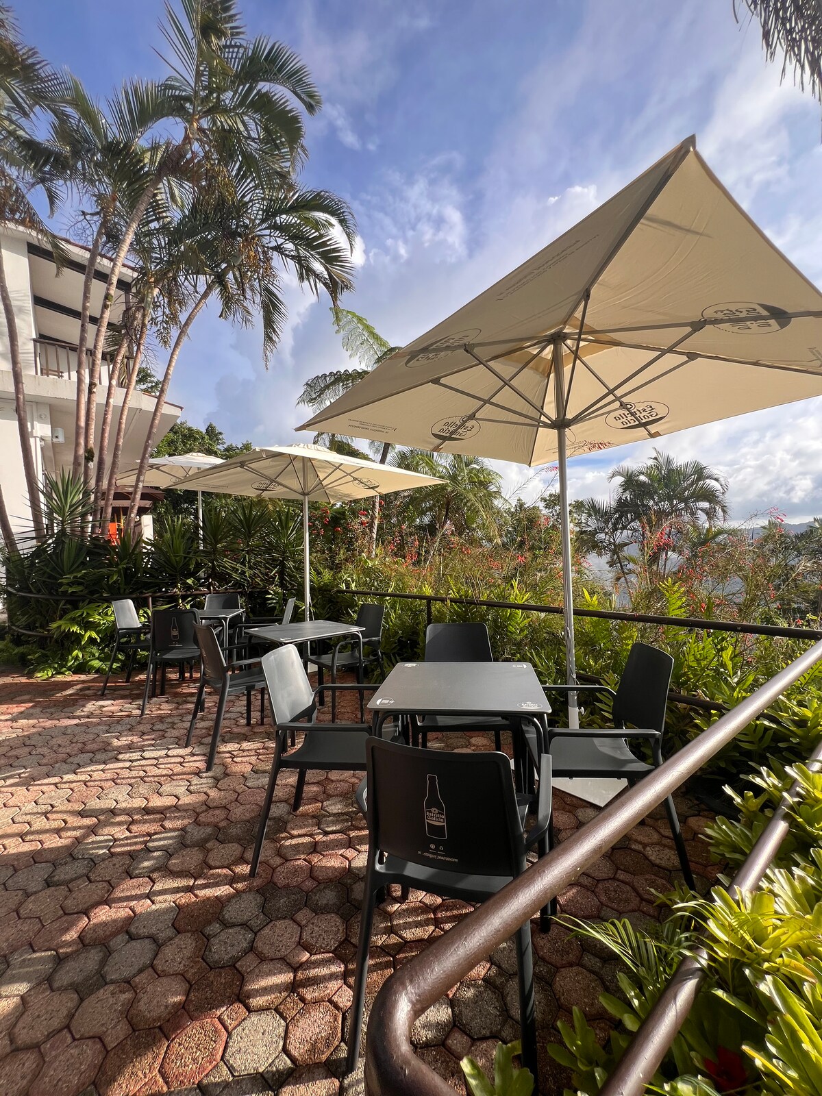 This property is located atop Road# 15, one of the oldest roads in Puerto Rico, built between 1885 and 1897 at an altitude of 2414 feet, in the municipality of Cayey. The route offers panoramic breathtaking views as well as a diverse culinary experience. Jajome Terrace is a hidden gem with scenic views surrounded by lush nature and manicured tropical gardens. La Robleda, a forest of native oak trees, whose pink blossoms decorate the surrounding slopes borders the property.