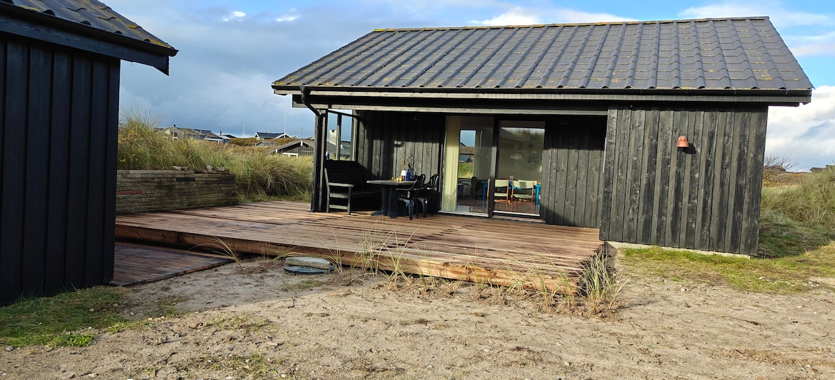 Ferienhaus im Badehausstil – 7 Min. zur Nordsee Charmantes Ferienhaus mitten in Dünen, Wald und Nordseenatur – nur wenige Gehminuten vom Strand. Genieße das Meeresrauschen, entspanne auf der Terrasse und erkunde die Umgebung per Rad oder zu Fuß. Ideal für Familien, Paare oder Freunde – mit gemütlichem Wohnbereich, Küche und Outdoor-Dusche. Erlebe Ruhe, Natur und dänisches Hygge! Highlights: - Strandnähe (7 Min.) - Familienfreundlich - Terrasse & Außendusche - Wander- & Radwege - Gratis WLAN