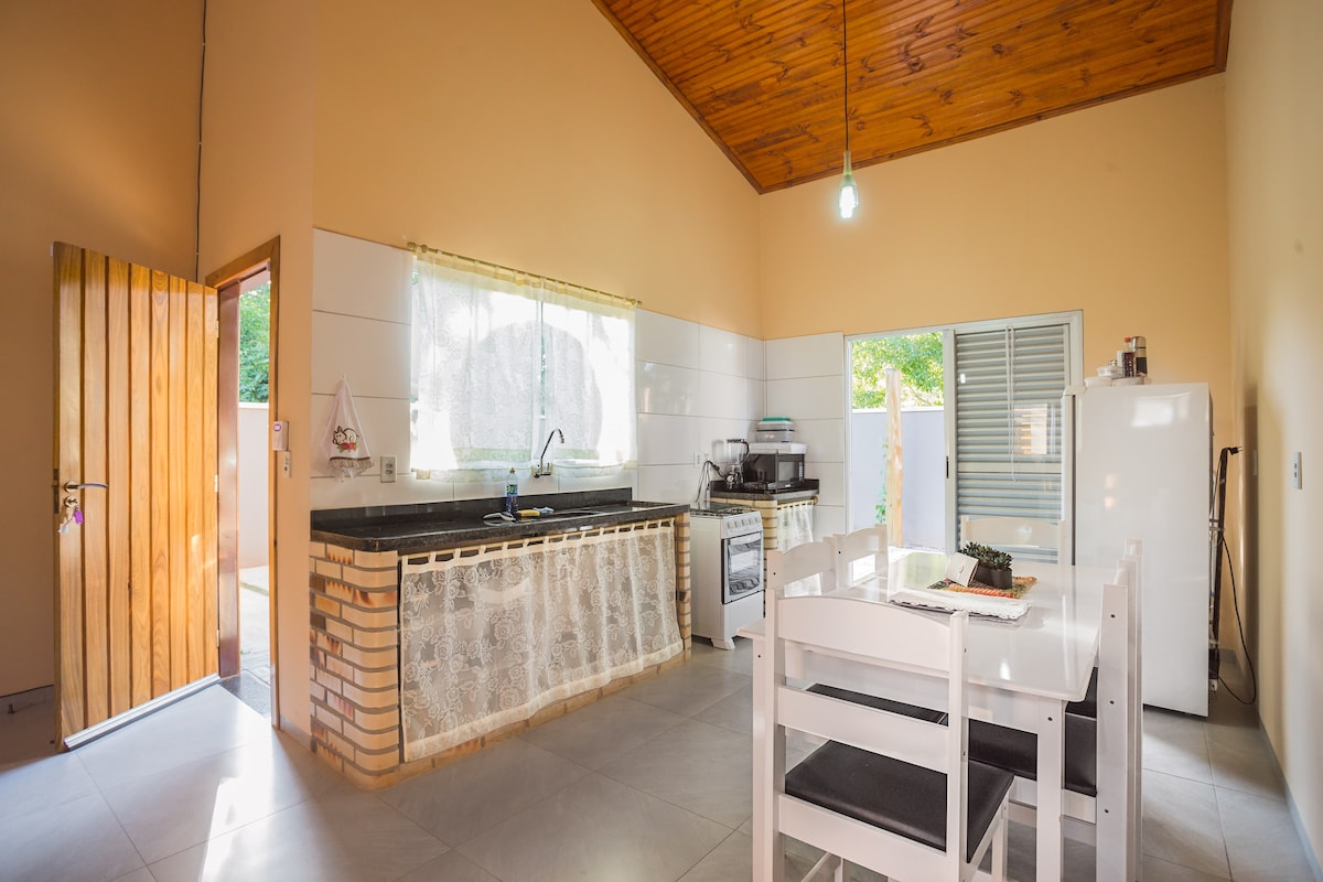 Haus in einer Wohnanlage, 5 Blocks vom Zentrum von Bonito entfernt. Neben den klimatisierten Schlafzimmern verfügt es über ein Badezimmer und ein Wohnzimmer mit Schlafcouch, Tisch, TV und Deckenventilatoren. Die Küche ist mit Herd, Kühlschrank, Mikrowelle, elektrischem Backofen, Kaffeemaschine und anderen Utensilien ausgestattet. Es verfügt über WLAN, eine Hängematte am Eingang des Hauses sowie einen Parkplatz. Es gibt auch eine Waschküche mit Waschbecken und Waschmaschine, neben dem privaten Hinterhof mit tragbarem Grill und Sitzgelegenheiten im Freien.