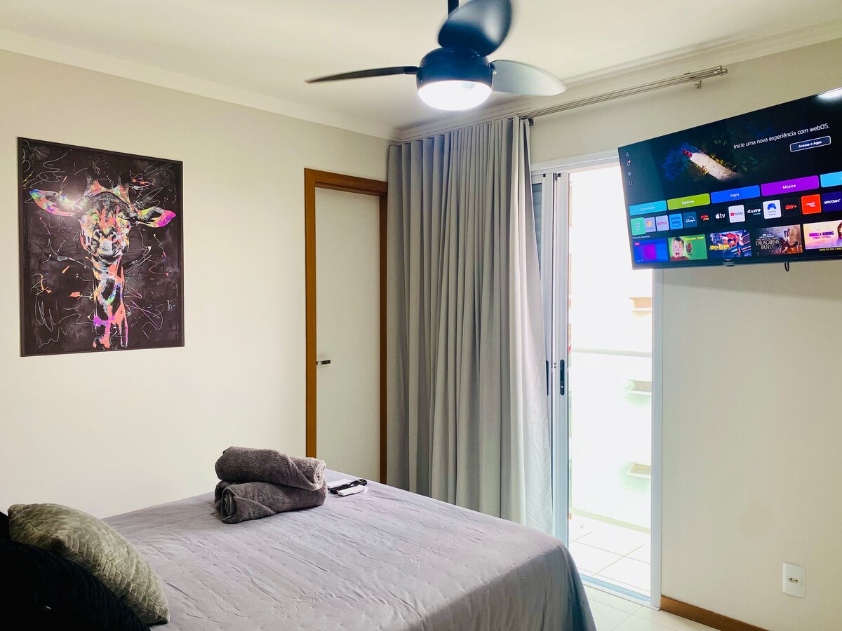 Entspannen Sie sich in diesem ruhigen und stilvollen Raum. Ausgezeichnete, voll ausgestattete 1-Zimmer-Wohnung für diejenigen, die Komfort und Funktionalität suchen, für bis zu 3 Personen (1 Doppelbett und Schlafsofa im Wohnzimmer) mit Deckenventilatoren in beiden Zimmern. Sehr gut gelegen, in der Nähe von Bauru Shopping, Aeroclube, Centrinho, USP, Bars, Restaurants und Märkten.