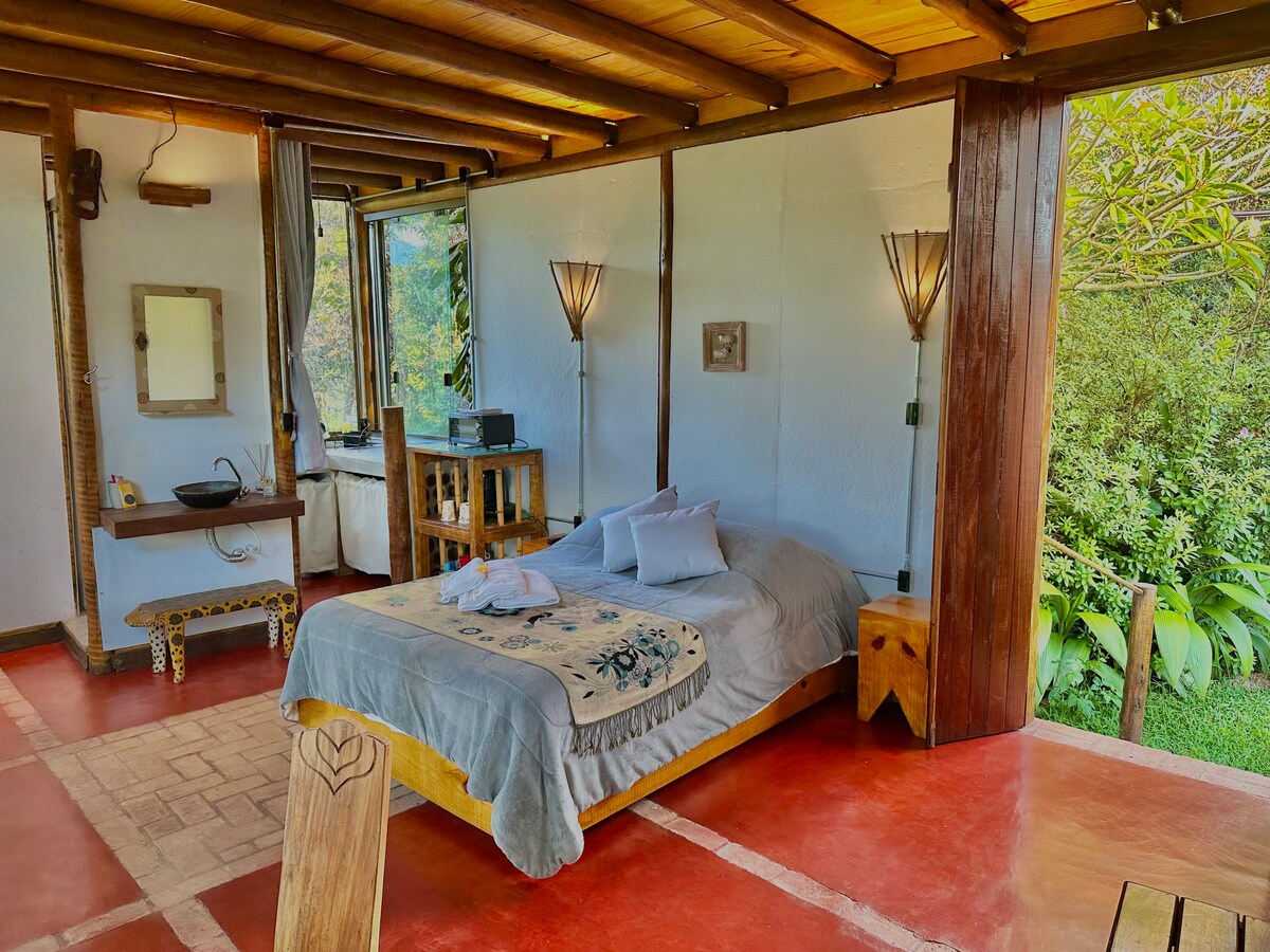 Chalé da Serra ist nachhaltig, wo die Architektur Barrieren zwischen Innen und Außen abbaut. Badezimmer integriert mit den hundertjährigen Steinen mit Panoramablick, private Dampfsauna, aufgehängtes Netzwerk für die Betrachtung des Paraopeba-Tals. Der Holzofen heizt das Badewasser und schafft eine gemütliche Atmosphäre mit 360°-Blick auf die Berge. Für Erwachsene maximal 2 Personen. Wir akzeptieren keine Haustiere.